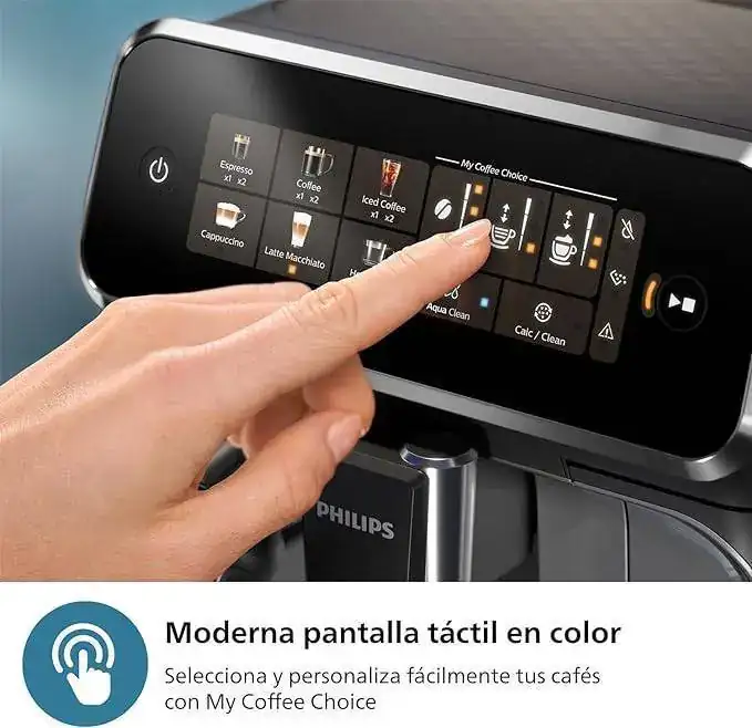 Modelo con espumador de leche, pantalla táctil.