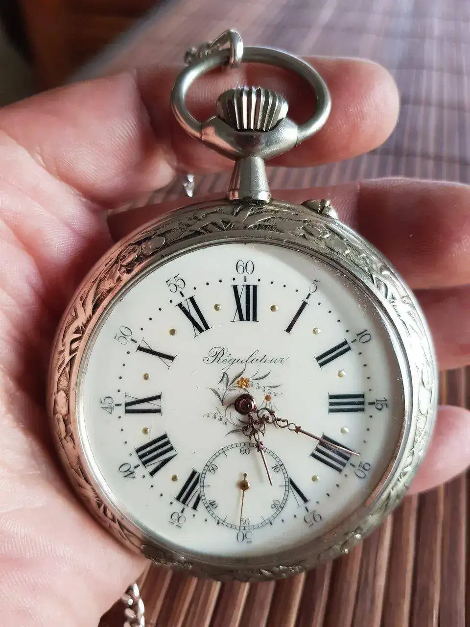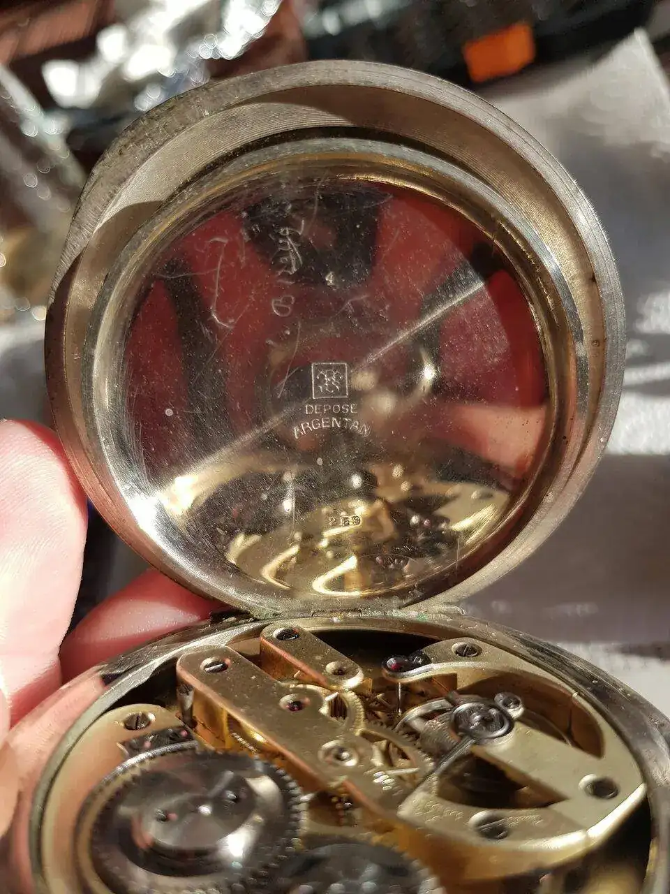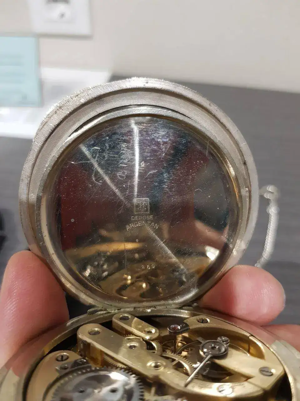 Buenas tardes aunque no soy muy prolífico en las conversaciones sigo ciertos hilos de mi interés como aficionado.Me llamo chus y aunque llevo un citizen actikron siempre he soñado con tener un reloj de bolsillo antiguo y me he decidido por un relion watch. Co tipo hebdomas el cual adjunto foto pero no era lo suficientemente grande para mi gusto así que lo venderé y me he comprado por ebai en francia esta preciosidad de regulateur al que adjunto fotos.He indagado el sello y se de quien es la caja atravesando del foro e investigando pero lleva unos números que me tienen intrigado y una fecha,algo sobre el movimiento etc si alguien pudiera darme más informacion estaria muy agradecido ya que me gustaría saber su historia y el vendedor no me ha facilitado nada.