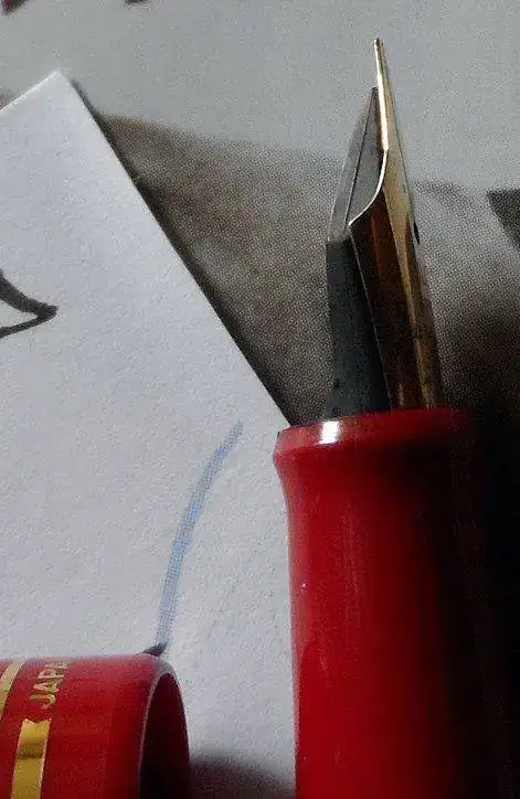 Estilográfica Pilot 78G con plumín plano tipo stub B. Medianamente flexible.
