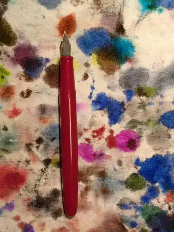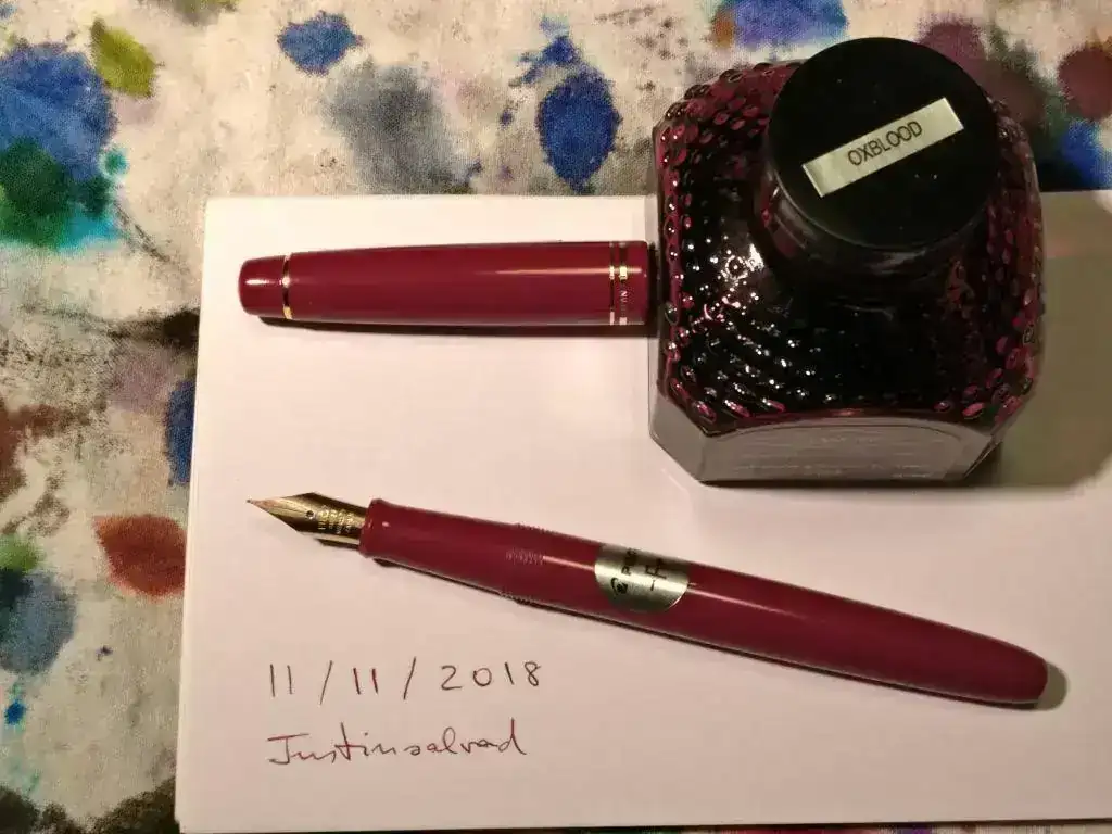 El plumín de acero, trazo F japonés, escribe perfectamente sin fallar ningún trazo, siendo para mí demasiado fino. La nota ha sido escrita con él a modo palillero.