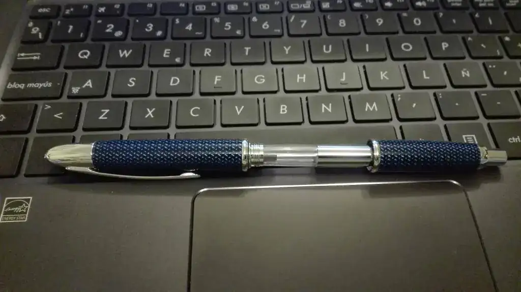 También es cierto, como he leído en algunas revisiones, que si agarramos la pluma muy cerca del plumín, dado que esta sección es de metal pulido, los dedos acaban por resbalar, lo que hace que haya que agarrar la pluma un poco más arriba. Estas peculiaridades en mi caso no me han supuesto incomodidades insalvables, y en general escribo muy a gusto con ella, pero repito que son temas que hay que tener en cuenta según el gusto de cada cual.