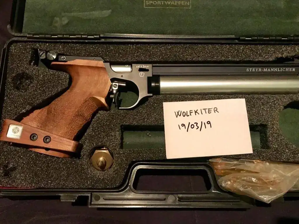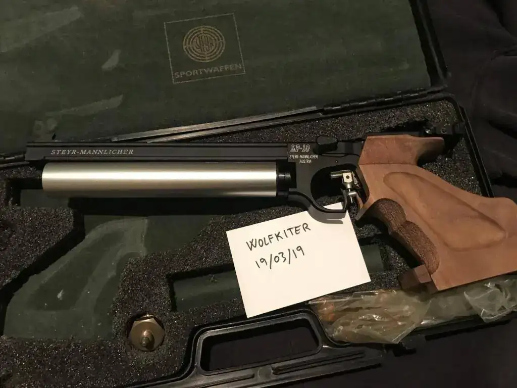 Bueno pues como para el día del padre me han traído una nueva, saco esta maravilla de la precisión a la venta, es una pistola del tipo PCP, de las mas reconocida y prestigiosa marga STEYR, en su modelo TOP la LP10, hasta la actualización del modelo a la versión EVO 10, la cual presenta mejoras pero sinceramente pocas ya que comparten muchísimas piezas en común. mas bien ha sido una mejora de diseño estético como el cubre cañon, el compensador de disparo del cañón y alguna cosilla mas.