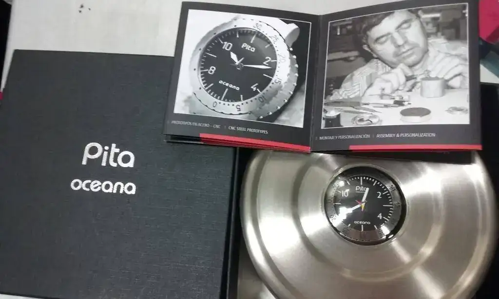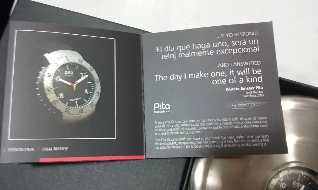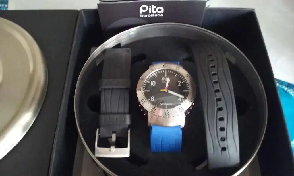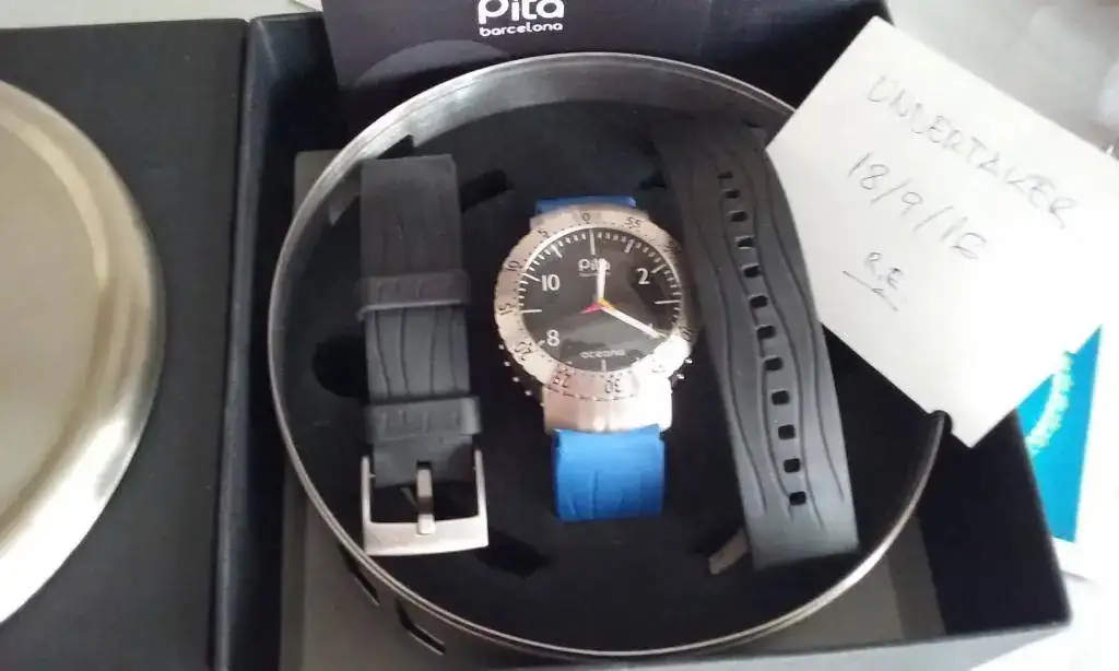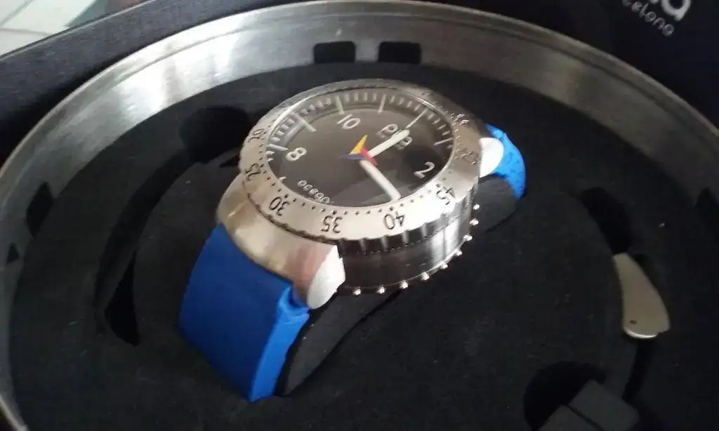 El reloj se encuentra en perfecto estado, con set completo, movimiento Pita-003 que permite la puesta en hora bajo el agua, correa de caucho azul y negra, cristal plexi de 8,2 mm. ¡una bestia marina de colección!