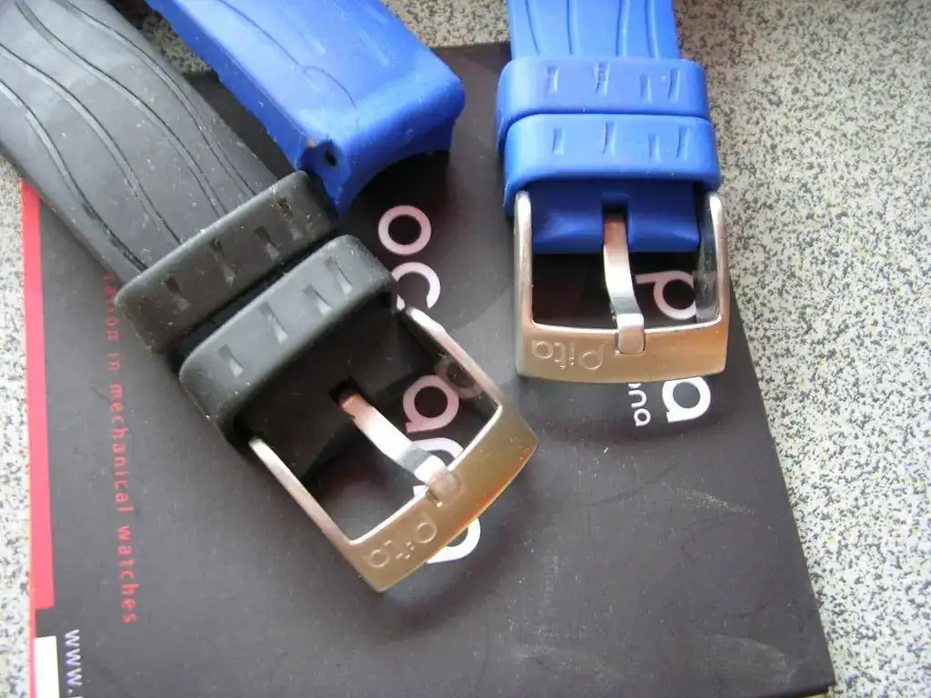 Brazalete: 2 de caucho, negra y azul.