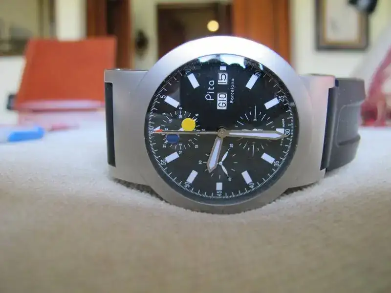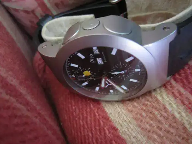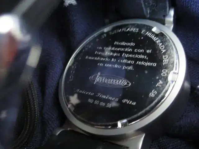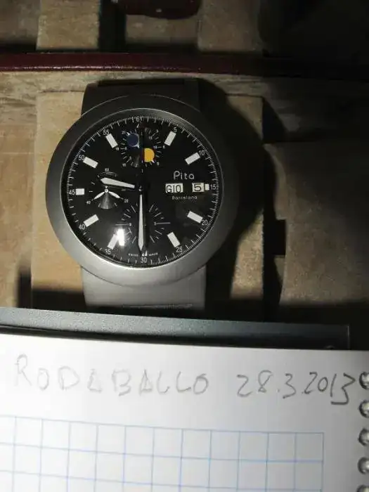 Incluye caja y papeles originales y la correa de caucho con que se suministró y otra más de cuero marrón "cocodrilo"