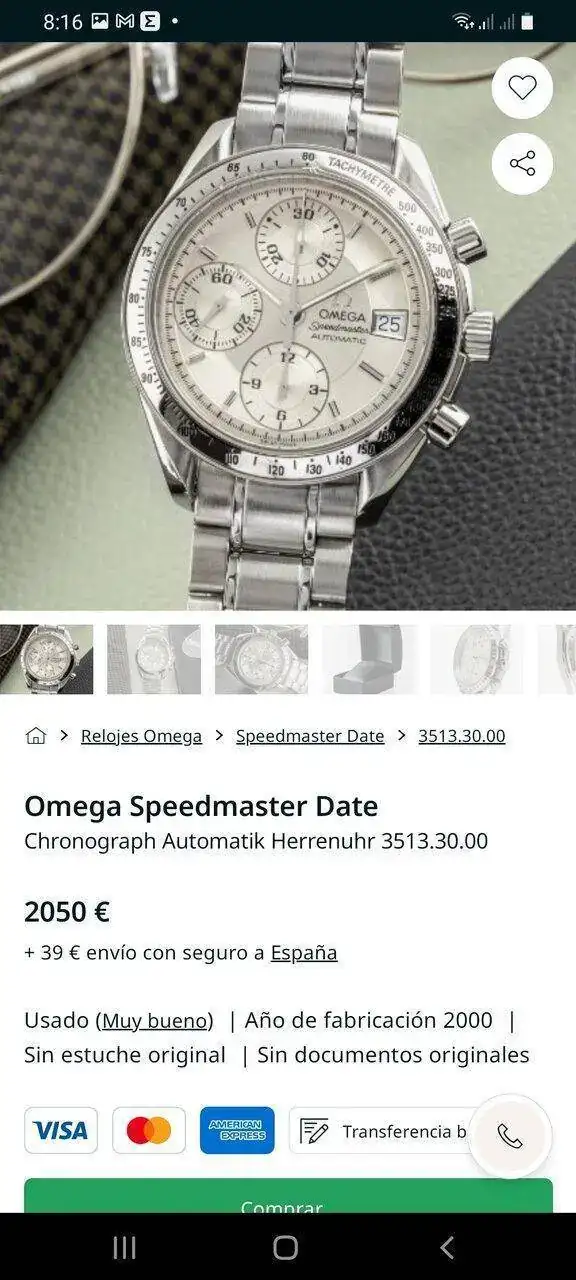 Me alegro, se los van a comer con papasEsta revenderora presenta el ticket de 285€ y lo vende a 2000€ en Chrono24 ahora veremos en la misma plataforma unos Omega usados al mismo precio