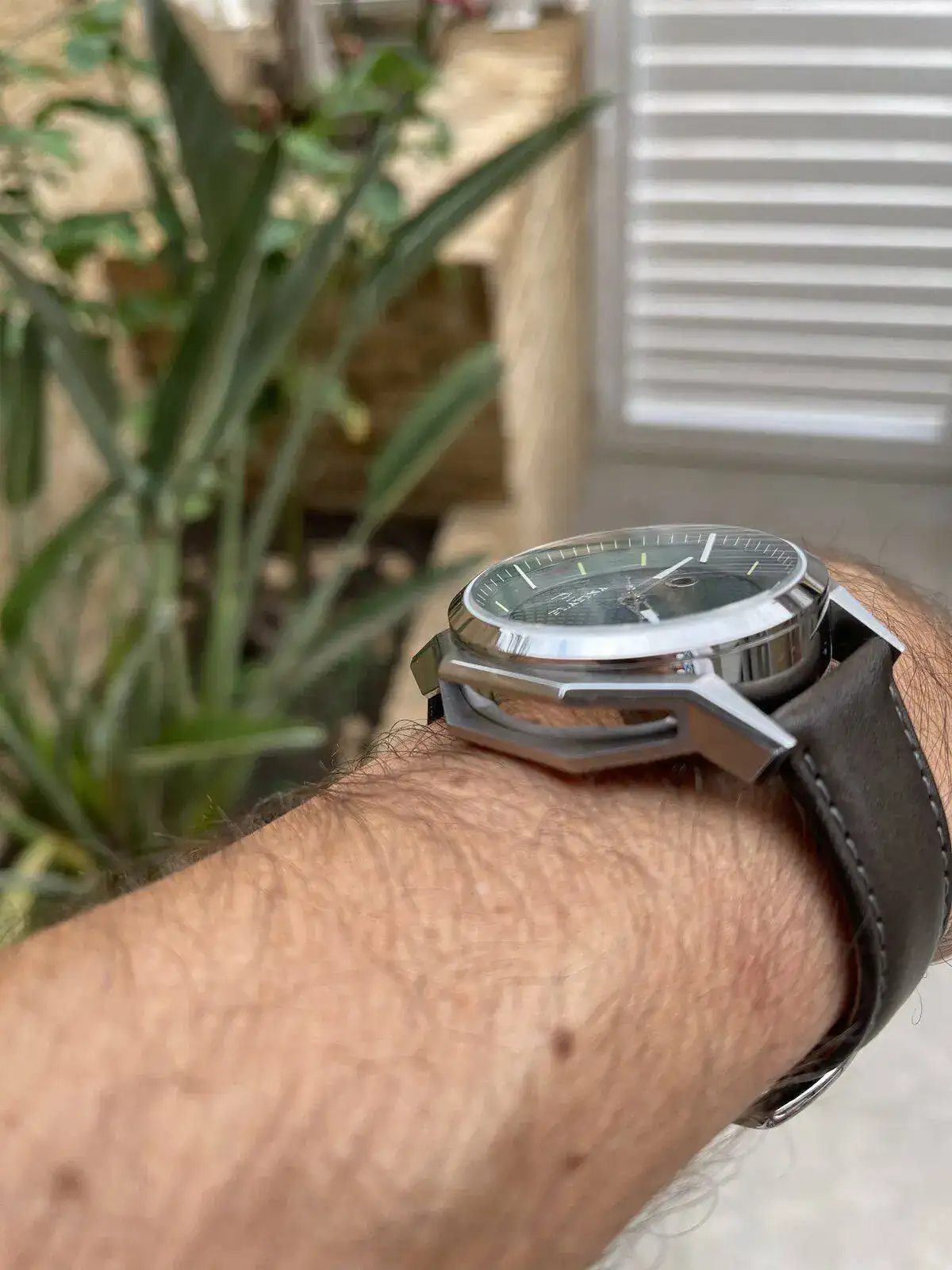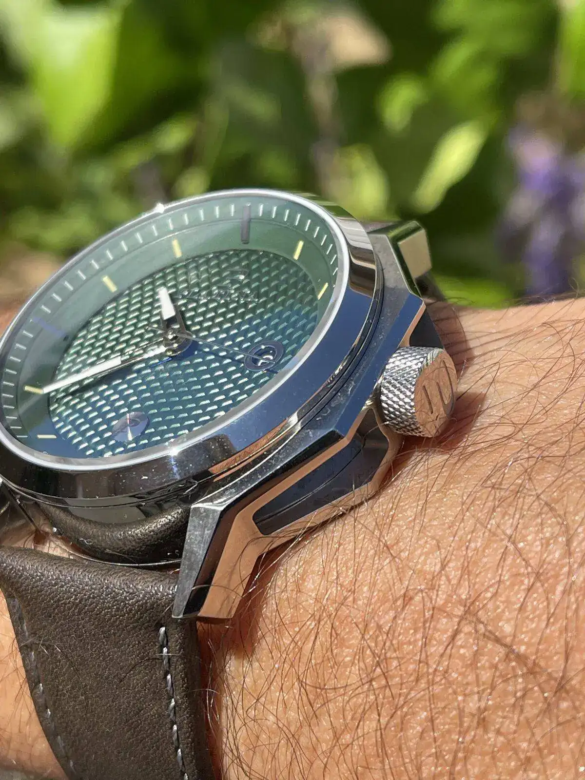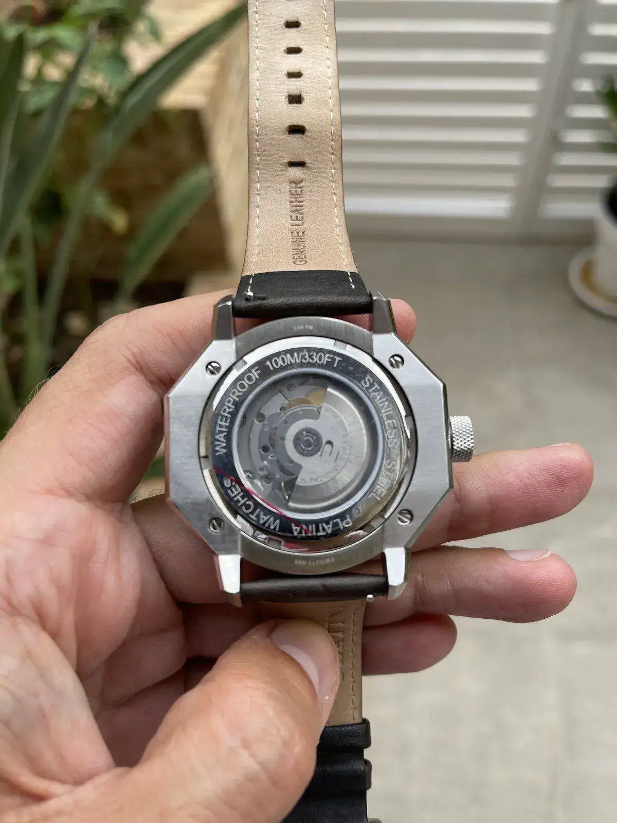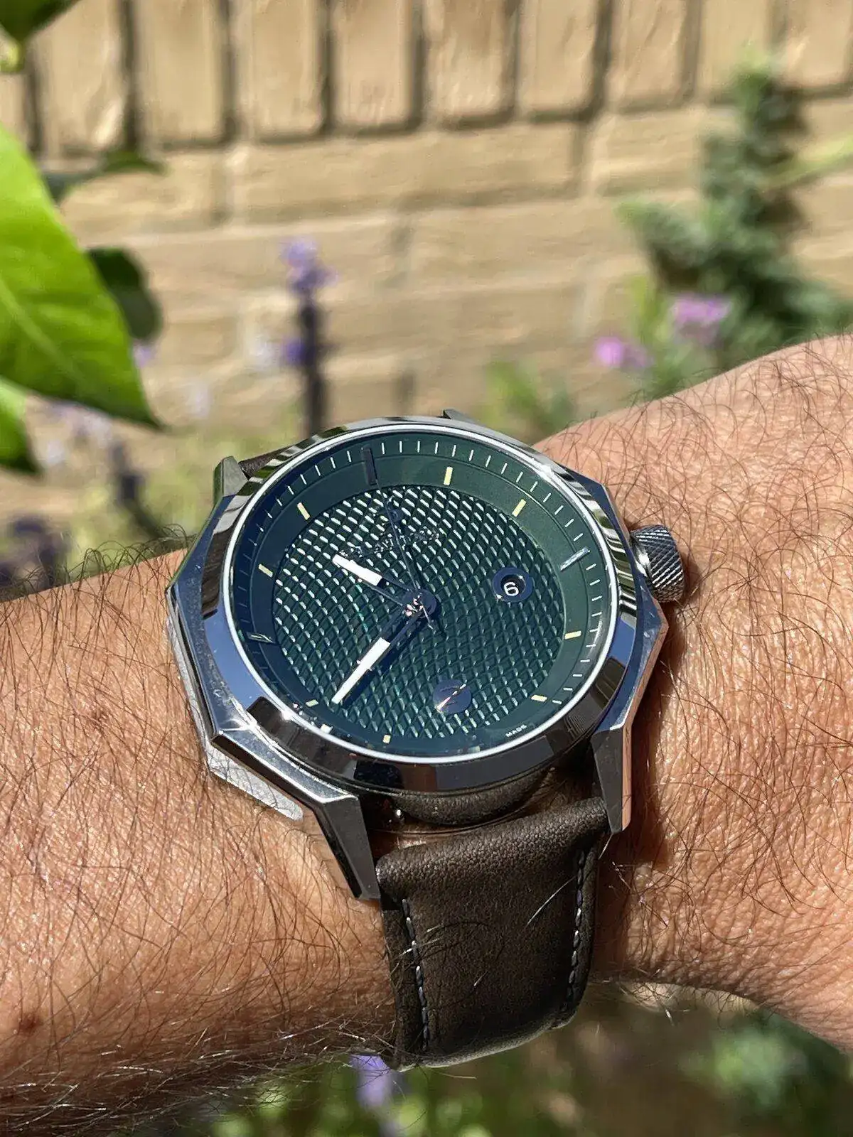 Platina Unbroko Vintage, con esfera verde, guilloche, de 44mm, interesante en mi opinion, con mecanismo automatico y 100 metros rezistencia a aqua.