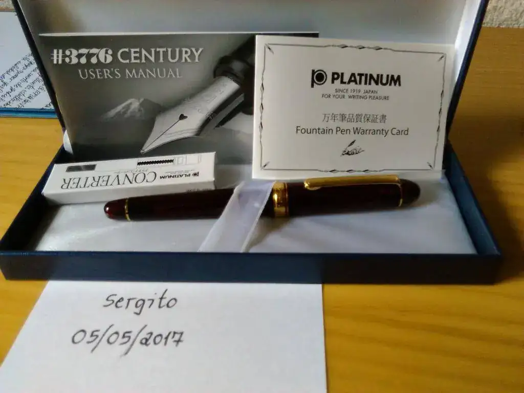 Saco a la venta, en esta ocasión mi Platinum #3776 en el acabado Borgoña (rojo) y plumín M, con convertidor de la marca incorporado, caja y todos los papeles correspondientes. Tiene muy poco uso, la compré hace un par de meses, pero para que otras entren, antes tienen que salir algunas...Le pongo un precio de 70€ con envío incluído. El pago sería por transferencia bancaria.