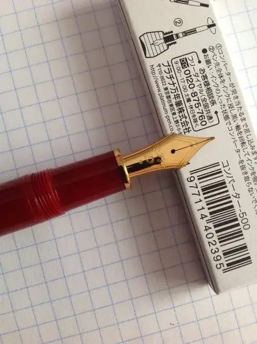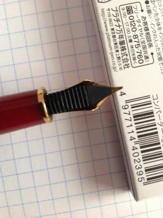 la he recibido hace poco y el trazo es muy fino para mis gustos (es un M japonés que escribe como un F). Eso sí, la escritura es fenomenal, trazo fluido y sin interrupciones. El que no haya probado un plumín fino japonés se está perdiendo algo.