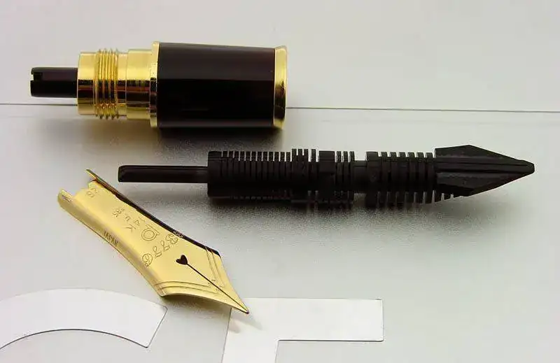 Sin embargo, su propietario me confesó que no las usaba lo que debiera porque el modelo que más le gustaba estéticamente era el marrón, pero el plumín no le agradaba por su excesiva finura de trazo. Por el contrario, el modelo Koi le resultaba demasiado llamativo para el uso diario en el trabajo, aunque su plumín era el que prefería por su mayor suavidad y trazo más generoso. La solución era evidente, solamente había que intercambiar los plumines entre ambos modelos, cosa que a priori parecía sencilla, ya que las piezas son iguales en todo, al menos externamente, exceptuando la sección visible del alimentador.