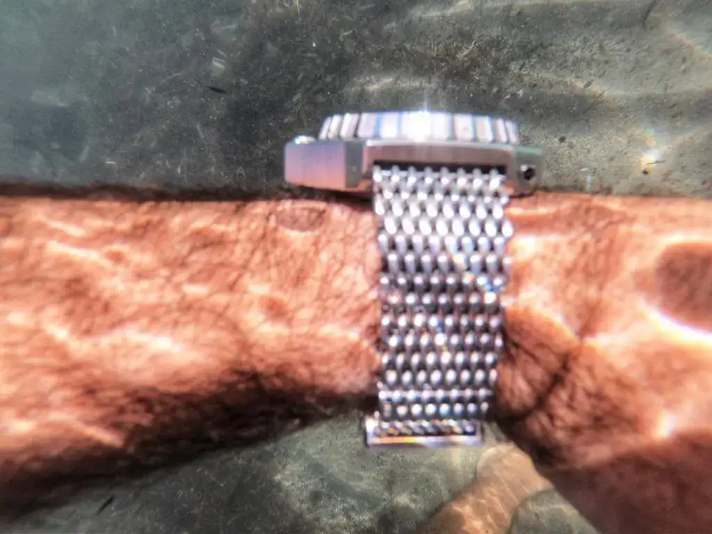 La milanesa es de una calidad muy superior junto con el cierre Calza mejor que un armis y de un acero pesado y según Omega resistente a mordida de tiburón 🦈