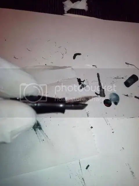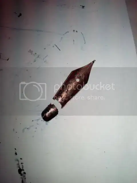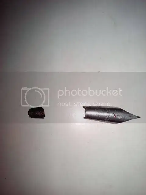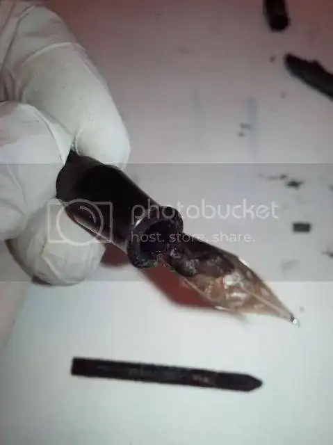 Es más, he sacado antes el alimentador que el plumín (normalmente es al revés). Ha salido el aimentador con unos golpes secos con un puntero, pero el plumín estaba soldado al cuerpo.