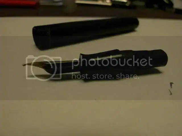 A la hora de probarla (sin tinta, para ver si tenía flexibilidad), el plumín se ha movido, como doblado. Hemos llegado a la conclusión que estaría mal montado... Por ese motivo la he comprado barata.