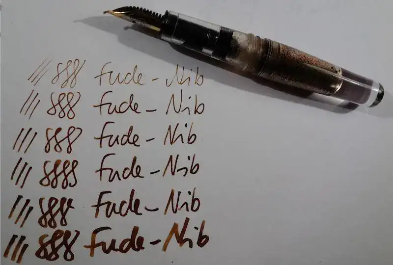 Yo me compré una Jinhao con plumín fude y no servía para nada, escribía con un trazo de un dedo de grueso más o menos. A lo mejor esa Hero va mejor, la Jinhao sólo escribía en una postura y muy muy gordo.