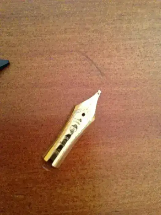 El plumín es de Oro de 14 K., punto ZOOM. Se encuentra en perfectas condiciones. Solo sería cambiar el plumín, es bastante facil sacarlo.