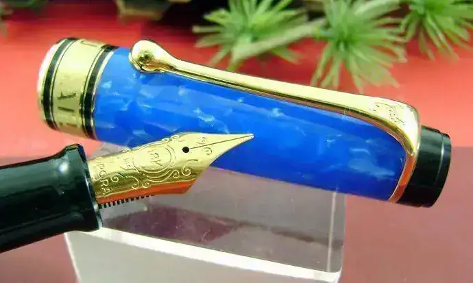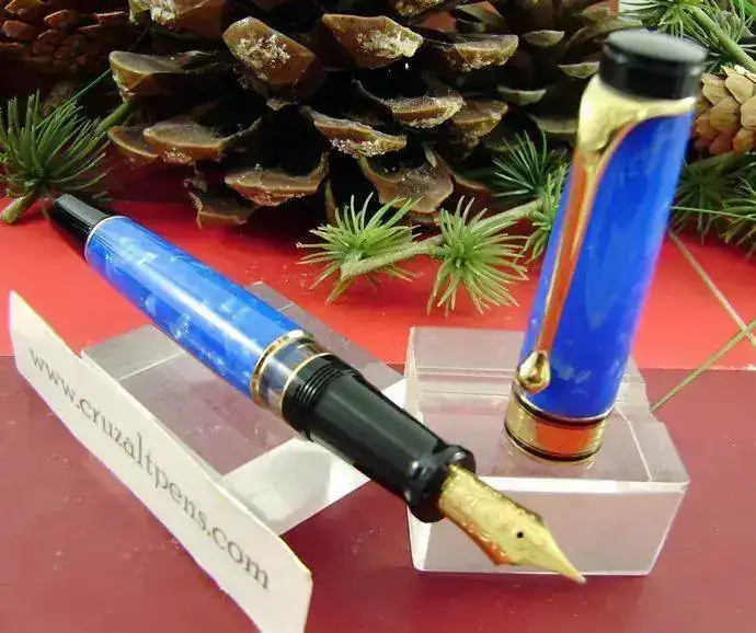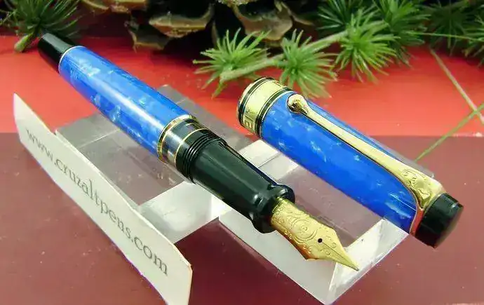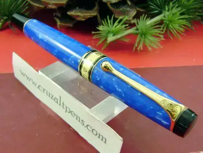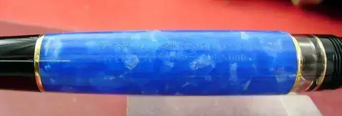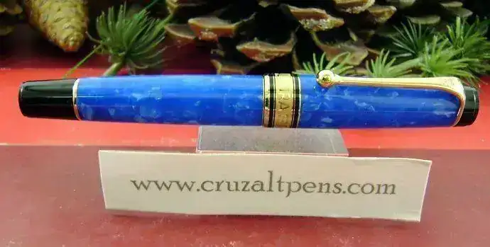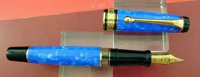 LA PLUMA ESTÁ FABRICADA ENN RESINA MARMOLIZADA DE COLOR AZUL.
