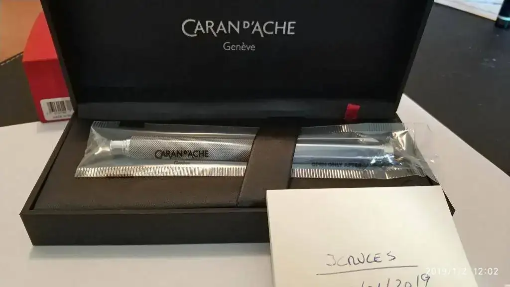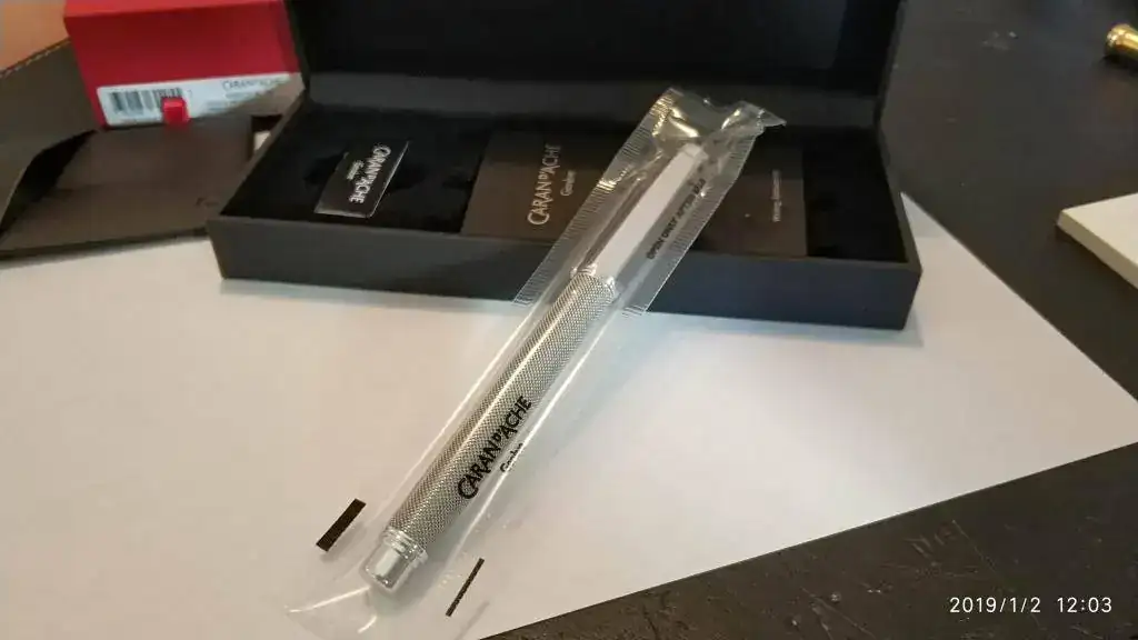 Con el debido permiso solicitado a la administración, pongo en venta esta maravillosa pluma Caran D'ache modelo Ivanhoe a estrenar completa de cajas y documentos, un modelo de acero platinado con plumin de oro de 18kt rodiado. Perfecta para regalo, en su blister original sin abrir.