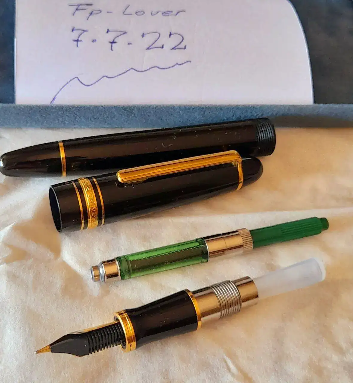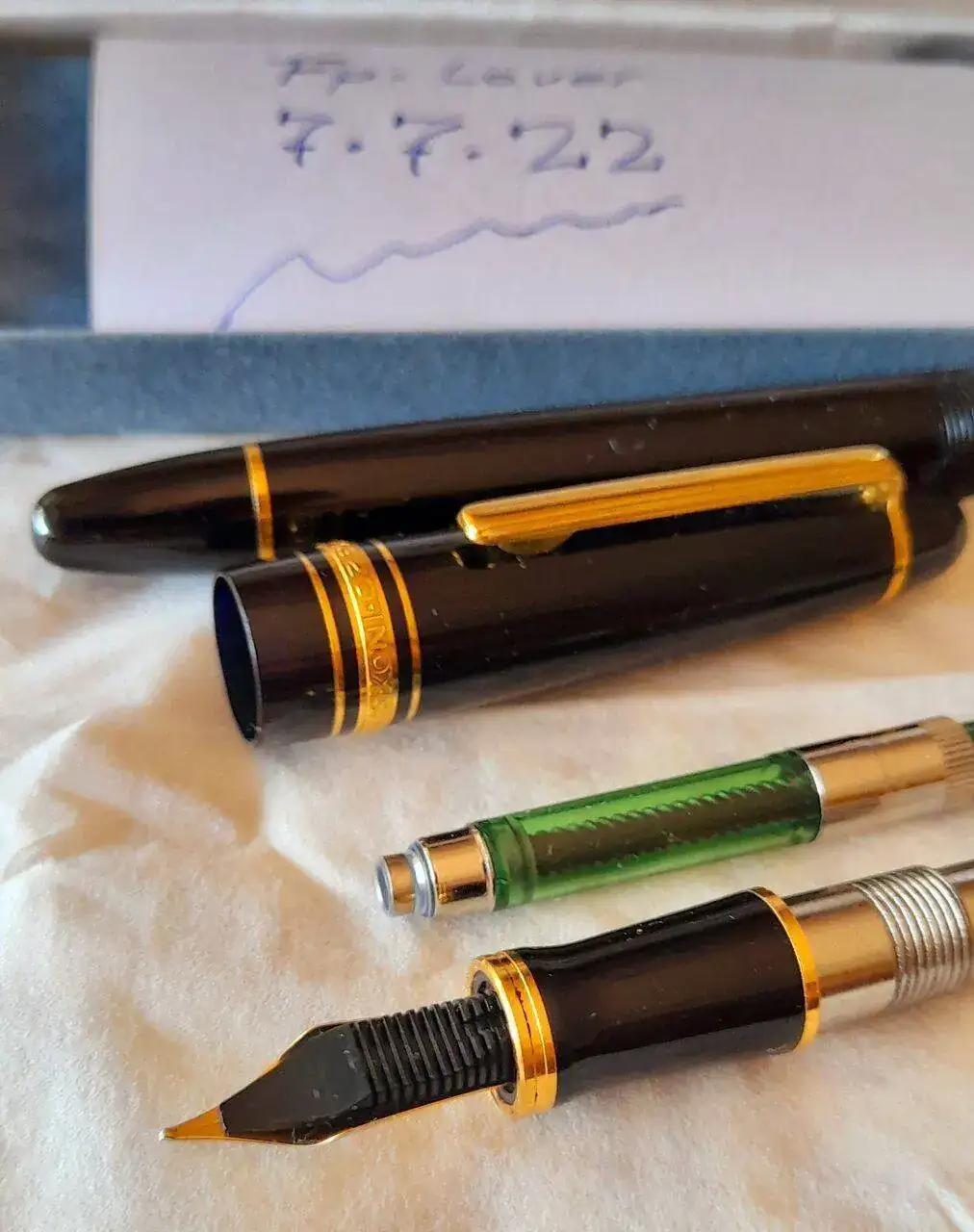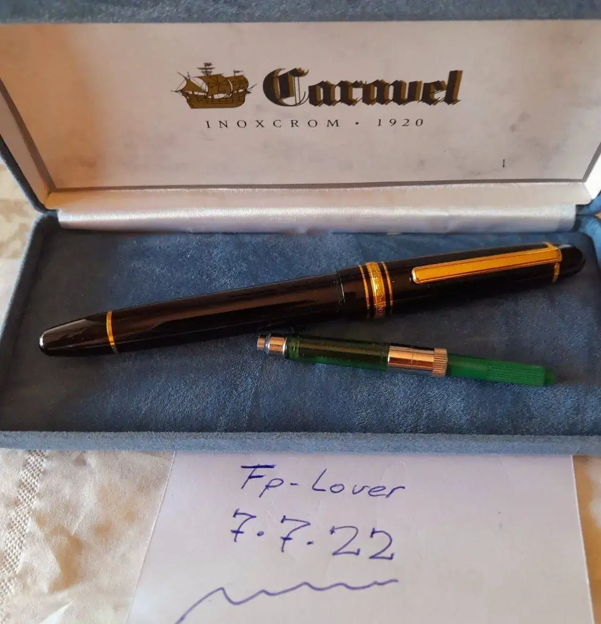 Cuerpo y capuchon en resina de color negro. Plumin bicolor punto M