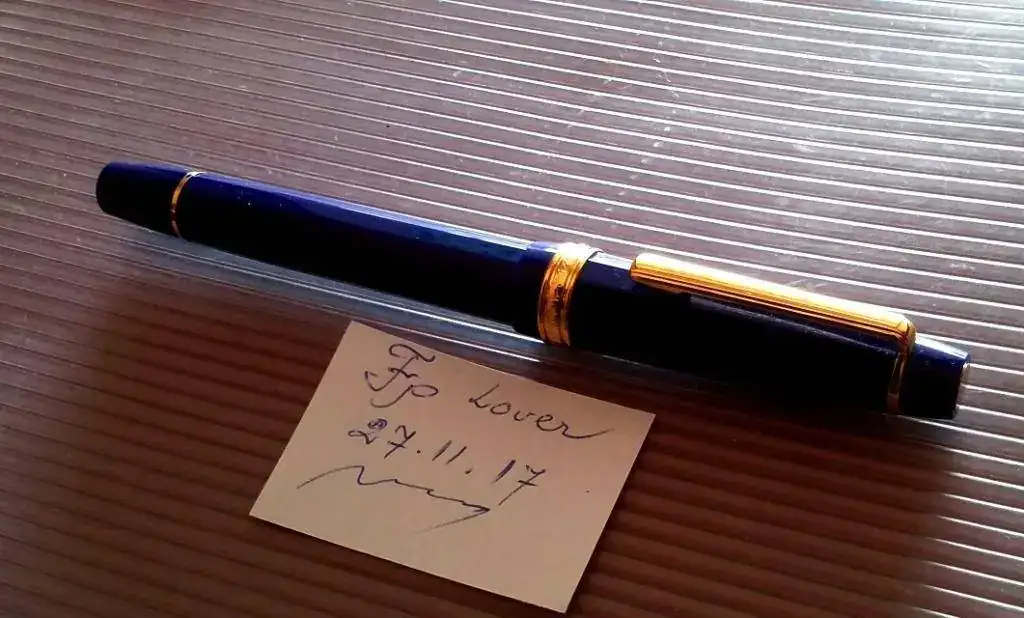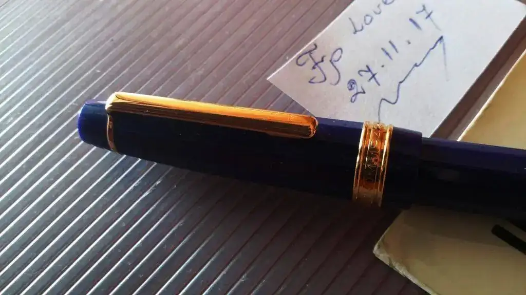 El capuchon y el barril en resina azul de alta calidad.