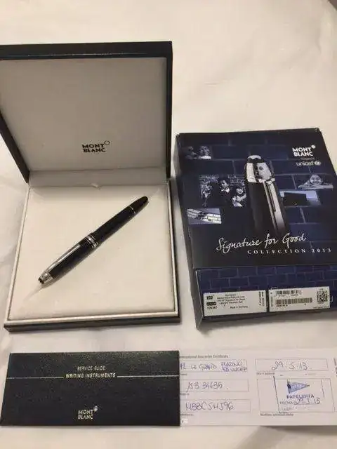 Esta nueva, solo se ha entintado una vez para probar. Tiene plumin F. Comprada en Montblanc en el Corte Ingles en 2013. Completa con su garantía sellada. Es preciosa.