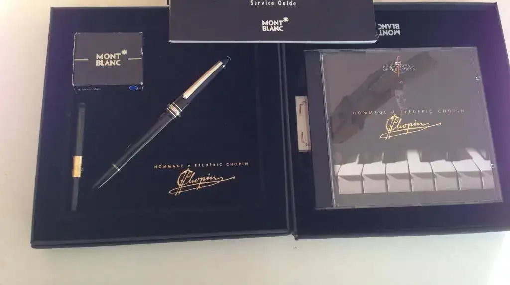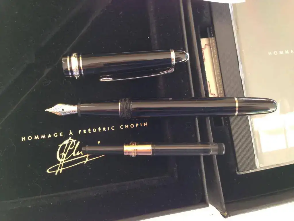 vendo mi pluma por falta de uso, es de platino y punto F, con toda su dotación y regalo dos cartuchos azules montblanc a estrenar, uno puesto y otro en la caja, está en perfecto estado a excepción de la caja como se ve en las fotos.