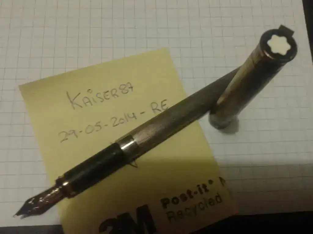 Bueno compañeros saco a venta esta pluma Montblanc que no uso hace mucho, su estado general es bueno sin golpes ni rayas preocupantes. En el plumin como veis pone además del simbolo de la casa oro 18K y esta en muy buen estado. Por fuera la unica pega es que parece ser de plata y al estar tanto tiempo guardada se a oscurecido yo creo que alguien que sepa limpiarla la deja perfecta, yo me he abstenido a limpiarla con nada para no cometer algún error al no saber de estas cosas.