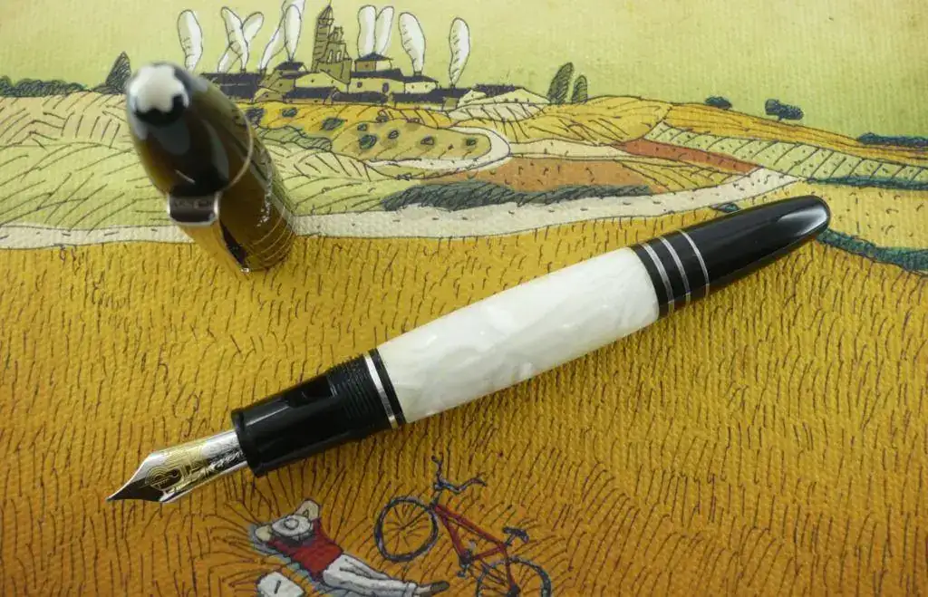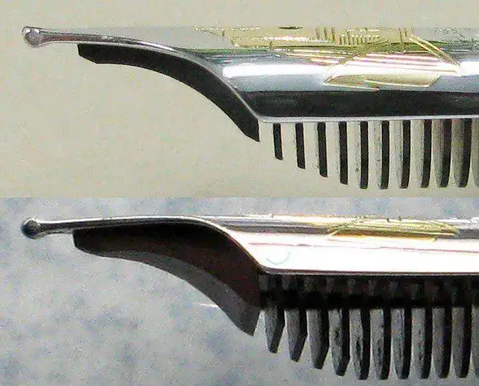 El punto fue modificado por Joseph, ya que la parte superior, de origen era plana (como todas), y rascaba si querías escribir con la pluma boca abajo. Joseph la redondeó. El antes y el después, pueden verse en la imagen de arriba.