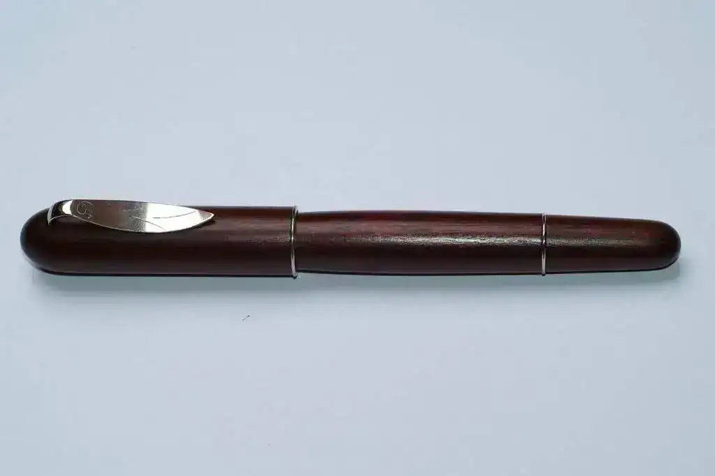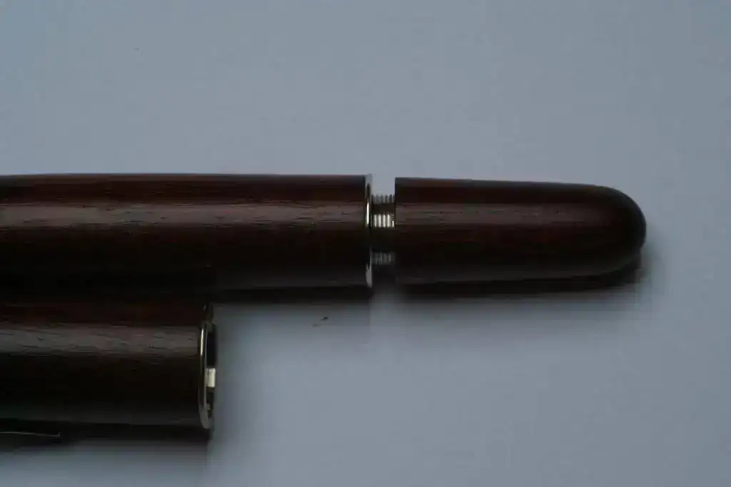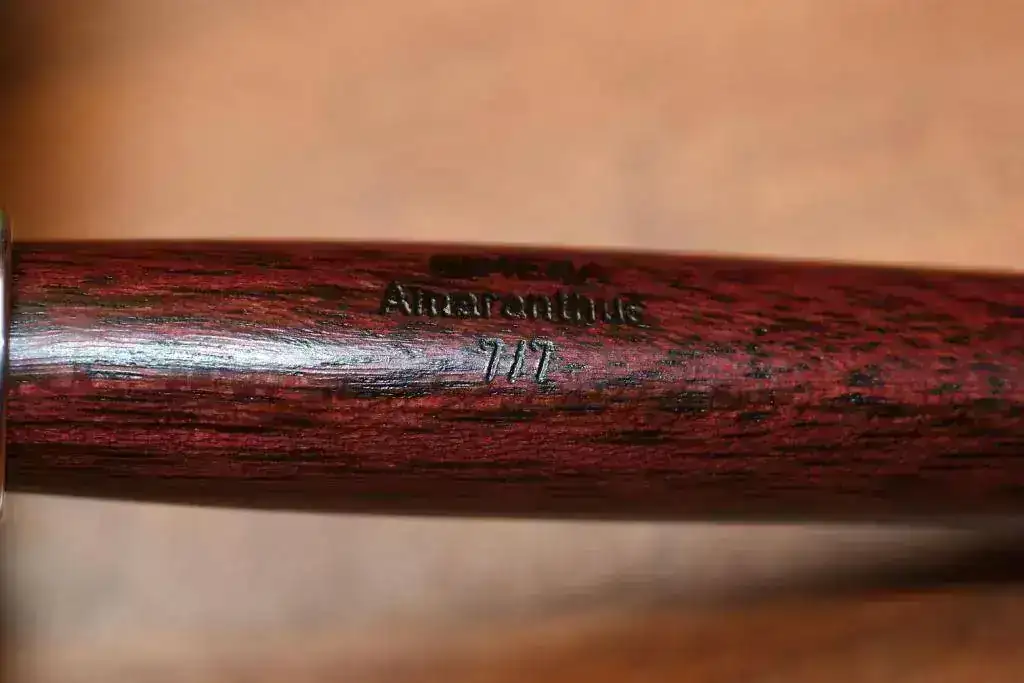 El cuerpo de la Amaranthus es de una sola pieza desde el plumín hasta el culote, y va haciendo una curva continua para que la cojas donde la cojas, los dedos se asienten cómodamente. Los anillos en la entrada del capuchón, en la sección del cuerpo del culote y todo el sistema de roscado es metálico para darle seguridad y protección. Están fabricados en bronce bañado en rodio.