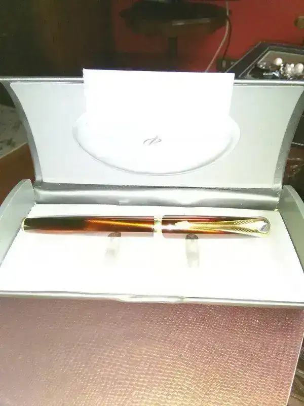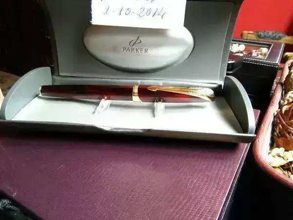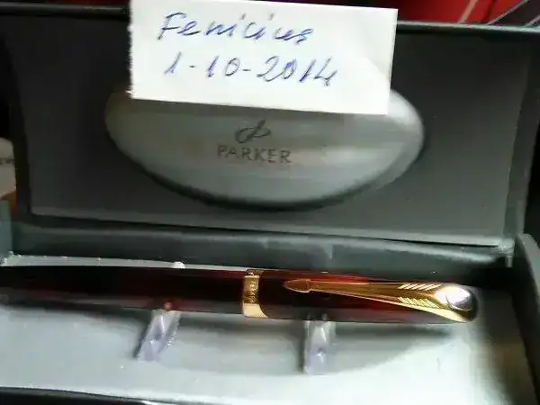 Vendo este atractiva y exclusiva Parker Ellipse. Este modelo particular de pluma fue producido en Francia por Parker. El estado físico de la pluma es perfecto. La pluma tiene un profundo y hermoso color burdeos brillante (el más apreciado por los coleccionistas) con un acabado de laca y de 23-KT de oro-plateado el clip. El plumín F tiene un aspecto muy moderno manteniendo una silueta Parker clásica. Se trata de una pluma ideal para alguien desean para agregar un fantástico Ellipse de Parker a su colección. Con estuche original.