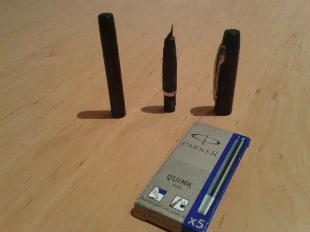 La cosa es que el otro día encontré una pluma esitilográfica parker creo que de las más básicas y baratitas de pura casualidad en un cajón de mi casa. Le he comprado tinta y se la he puesto pero parece que no escribe ya que escribe con un azul muy muy fino. La he sacudido y nada. ¿Sabeis que le puede pasar? He de decir que la pluma no se ni cuantos años llevará en el cajón igual está reseca o algo. ¿O directamente la tiro a la basura?