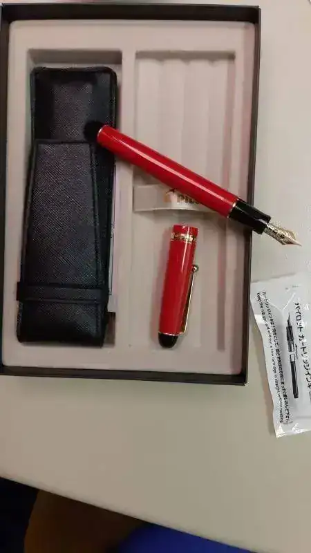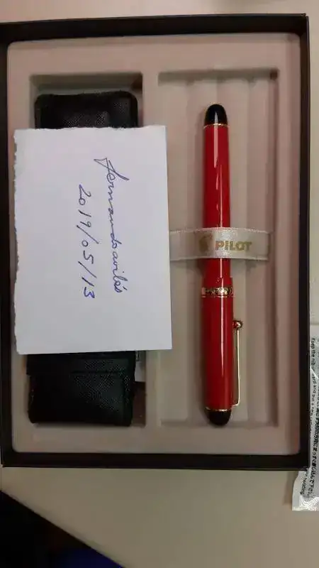 La pluma está comprada en Japón en mayo del año pasado. Va con su caja y el estuche que trae de regalo.