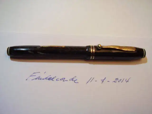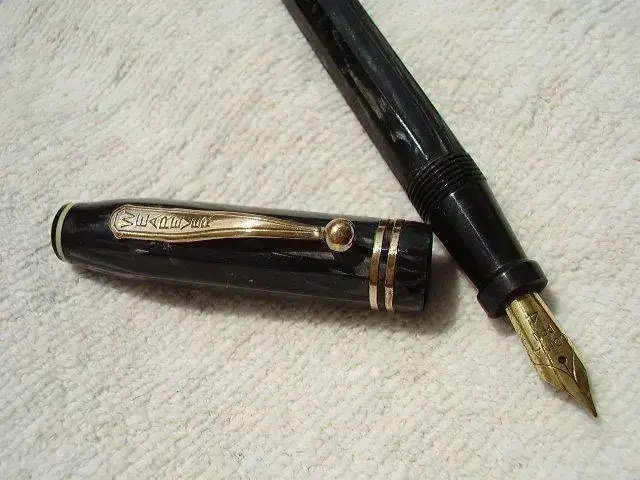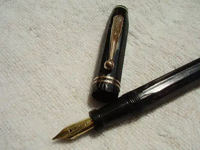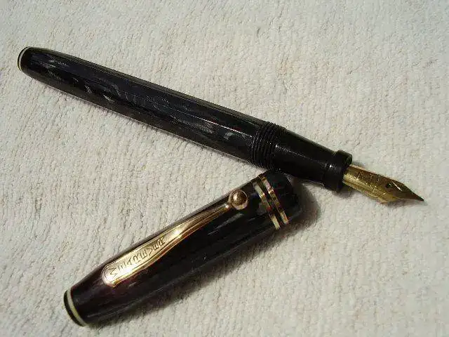Vendo esta pluma Wearever Supreme de los años 30 de fabricación USA, en un bonito gris-negro marmolado, cuerpo y capuchón están facetados con diez lados.