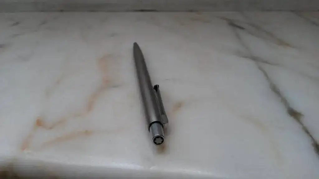 El bolígrafo creo que es un Montblanc Noblesse Silver Slimline Ballpoint de los 70. Está en perfectas condiciones y el mecanismo actúa correctamente.