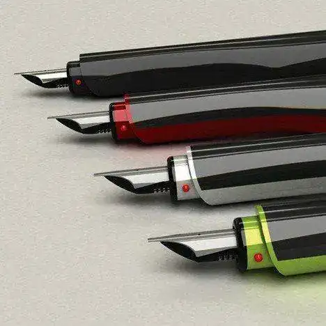 La segunda es una pieza que aporta nuevas funciones al concepto de estilográfica. El invento se denomina "dscribe" y el padre de la criatura es la firma Reuben Png. Al parecer sirve para enviar directamente en forma de sms lo que se escribe con ella en papel. Lo que no tengo muy claro es si escribe de verdad. En la foto de los plumines parece que monta algún tipo de itálico. Igual que antes, si alguien la prueba, que describa la experiencia.