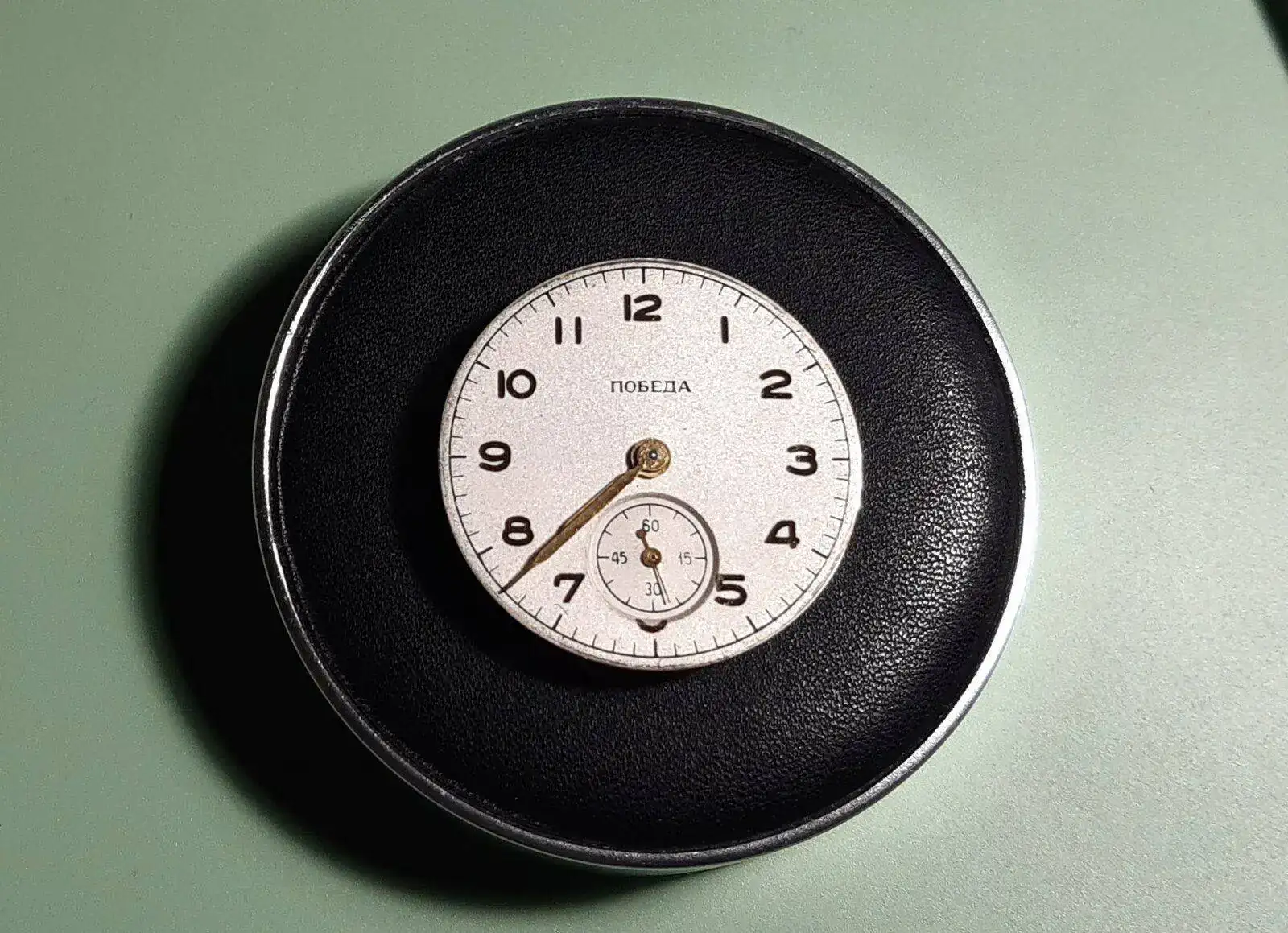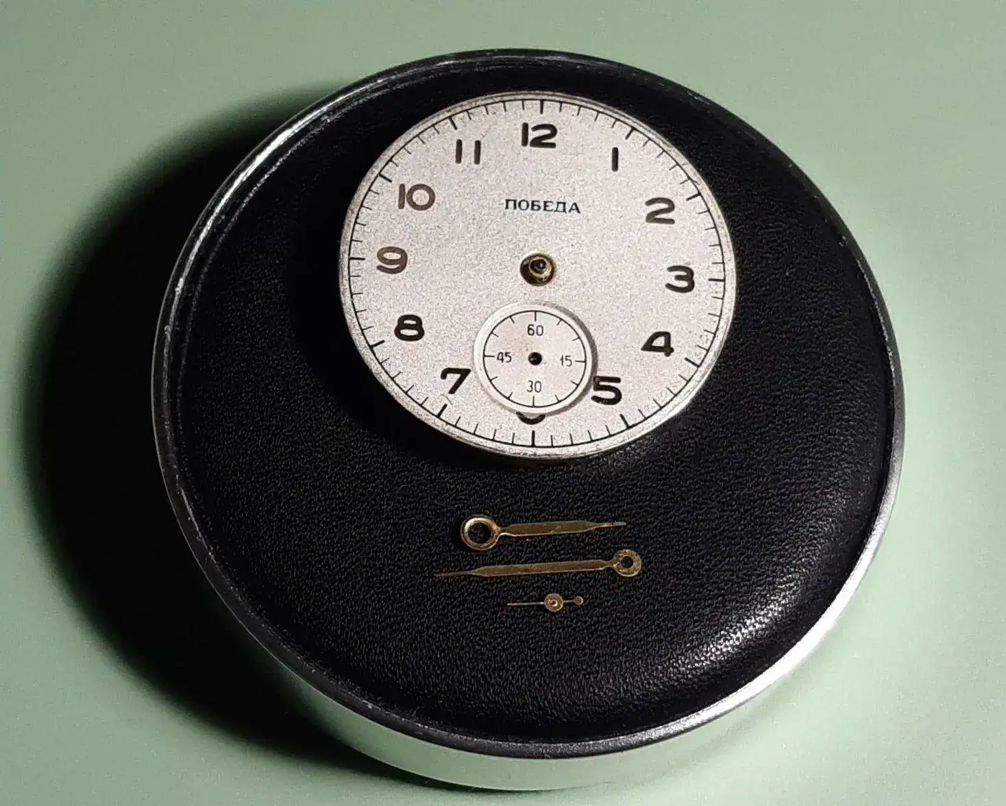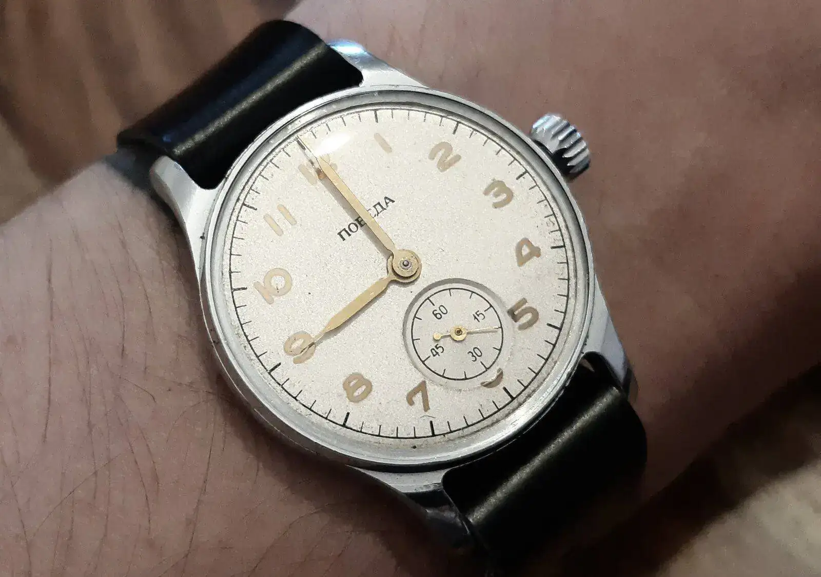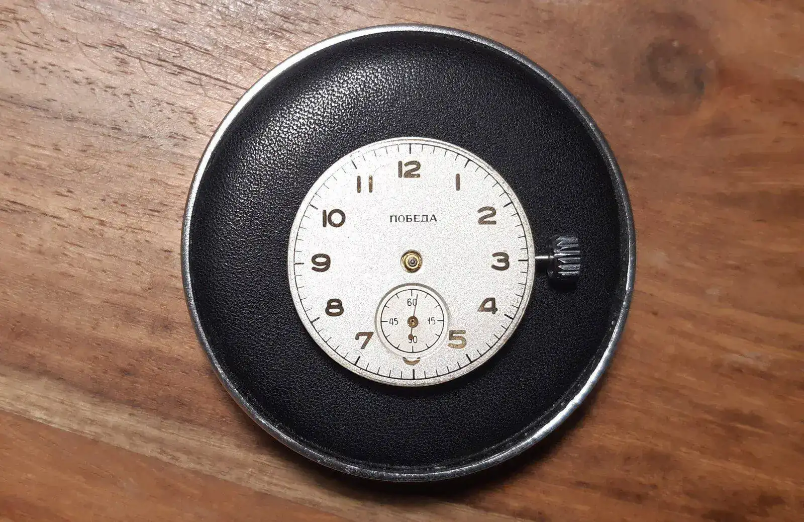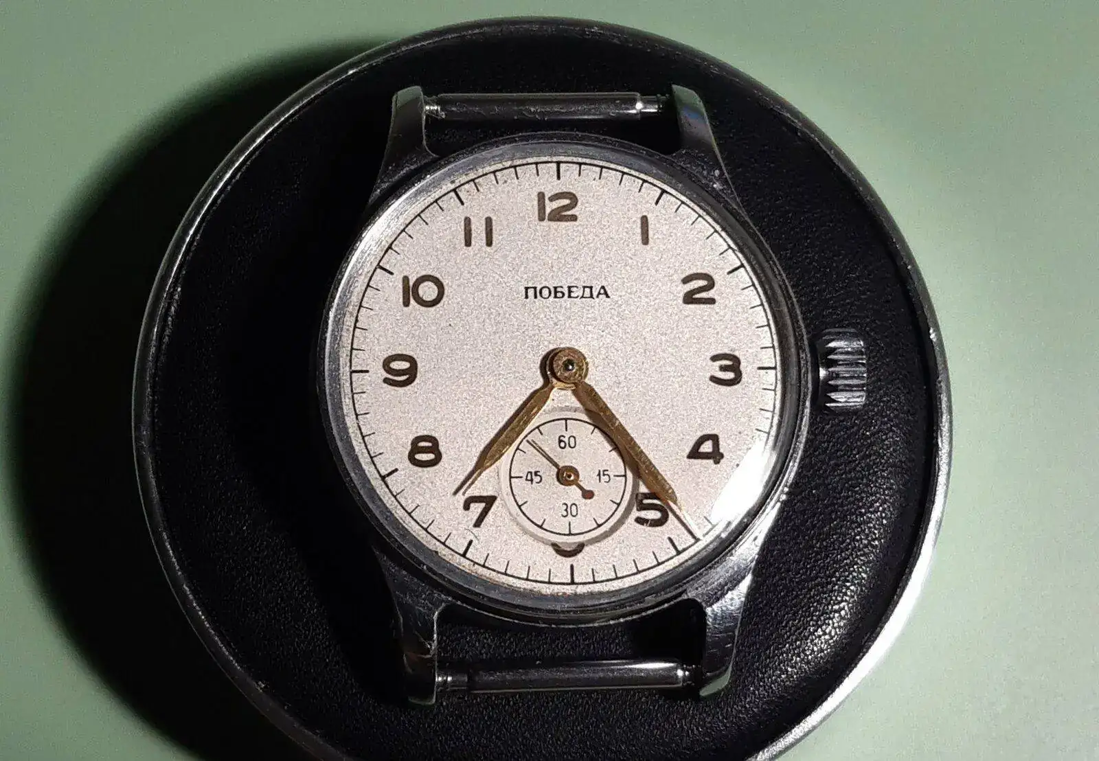 Y precisamente el reloj que está en la almohadilla es este Pobeda:
