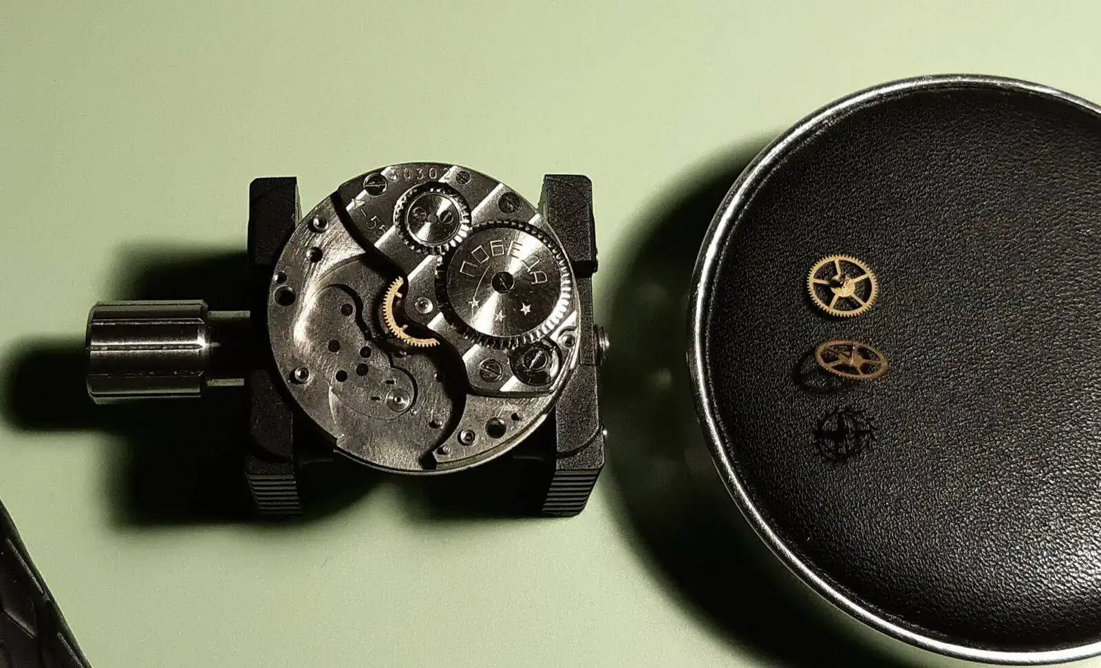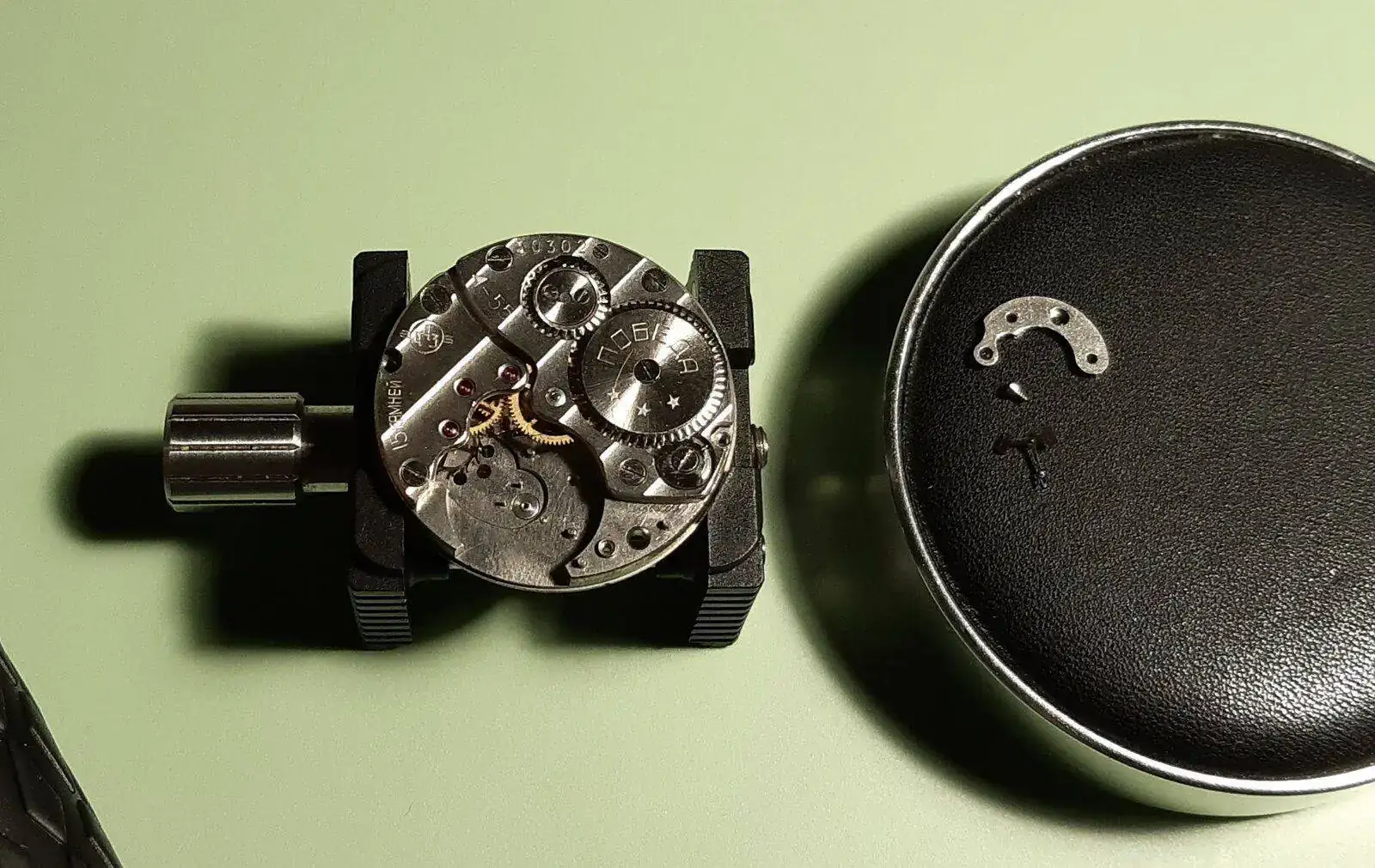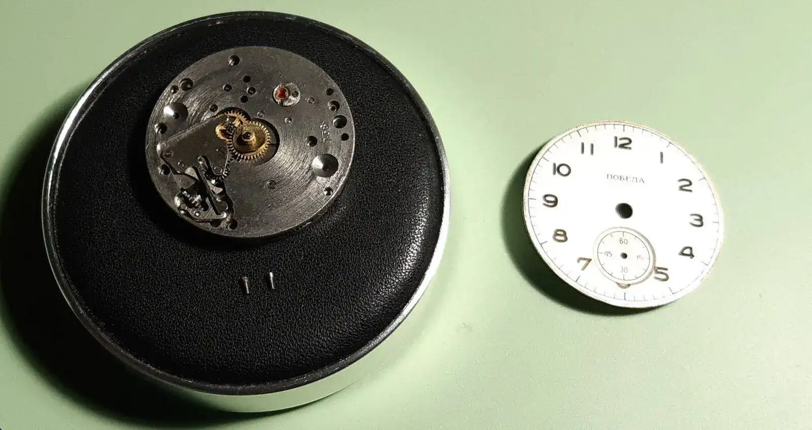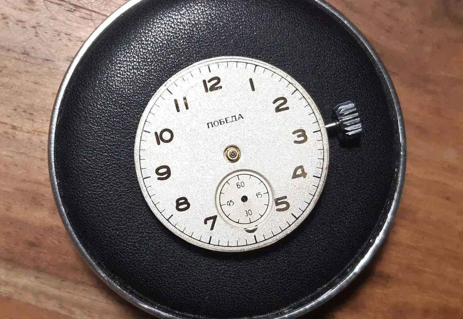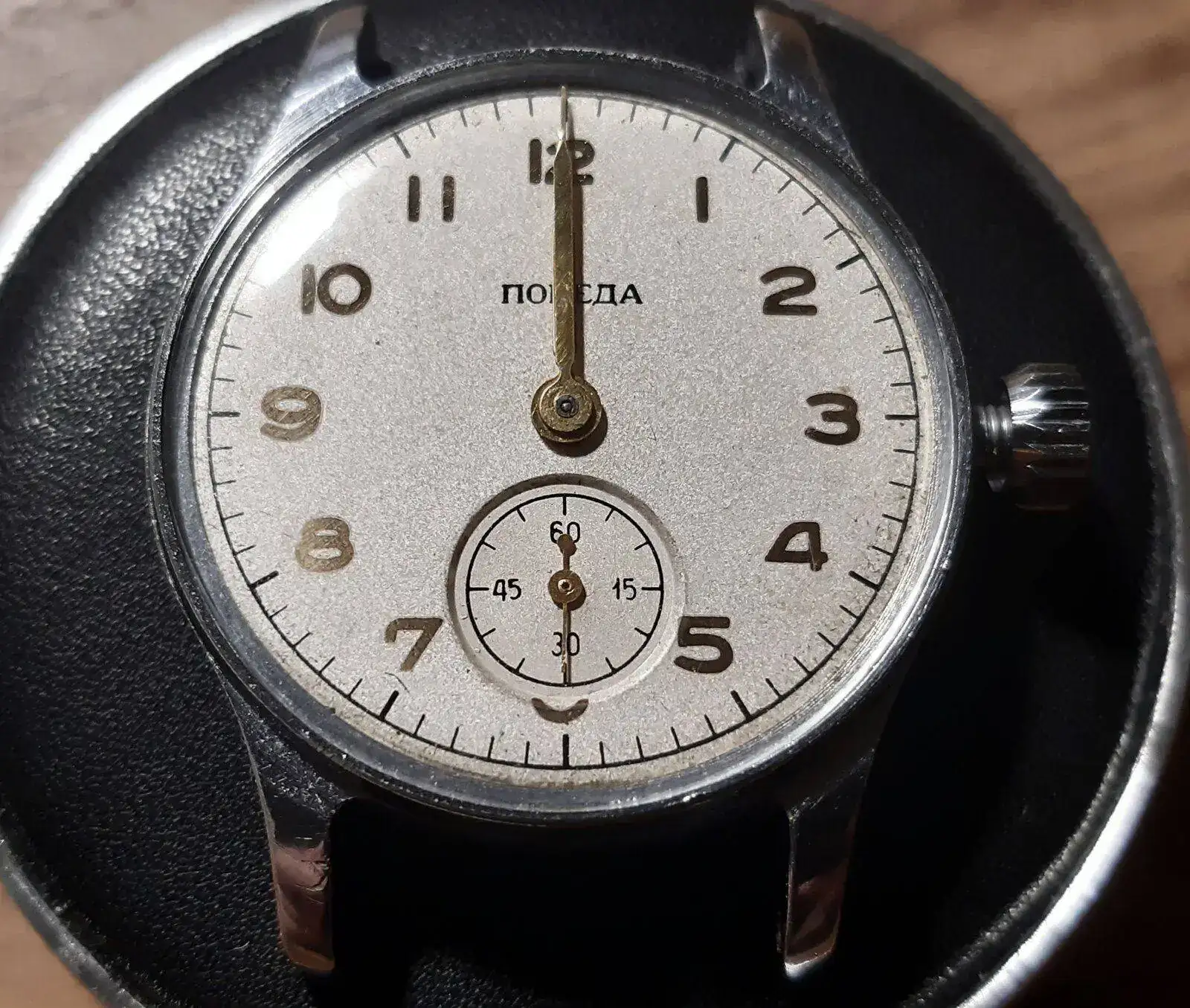 Y precisamente el reloj que está en la almohadilla es este Pobeda: