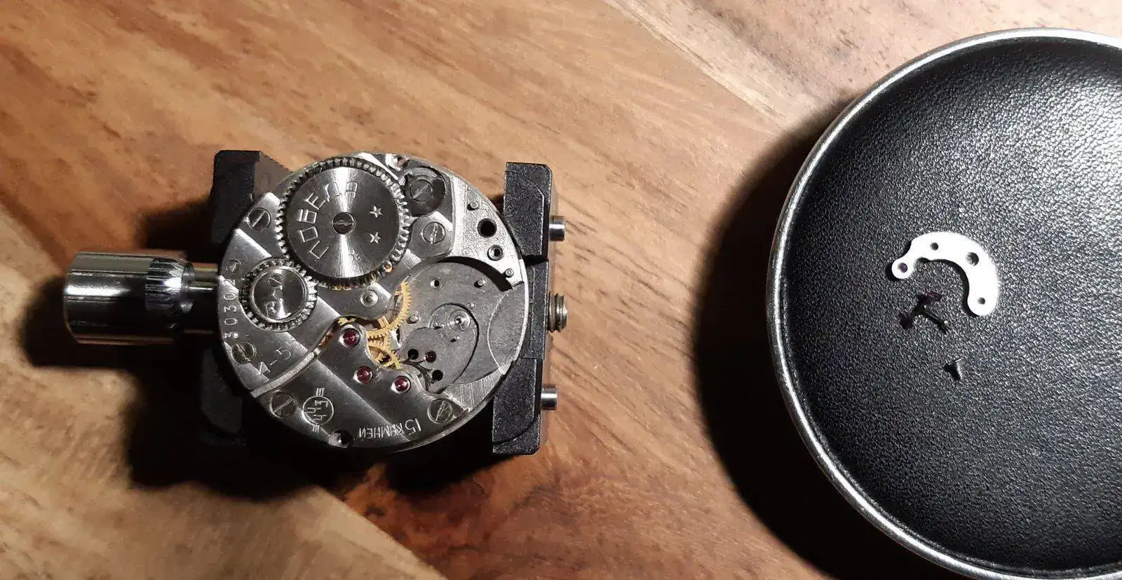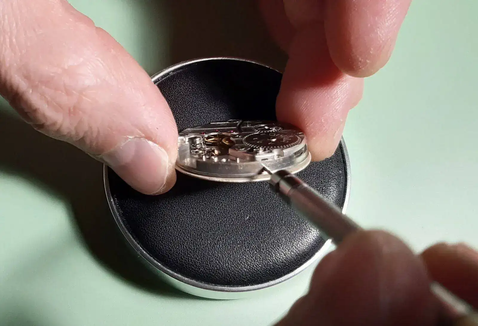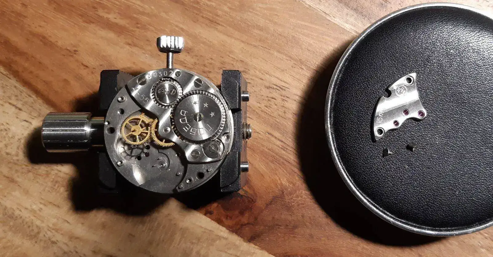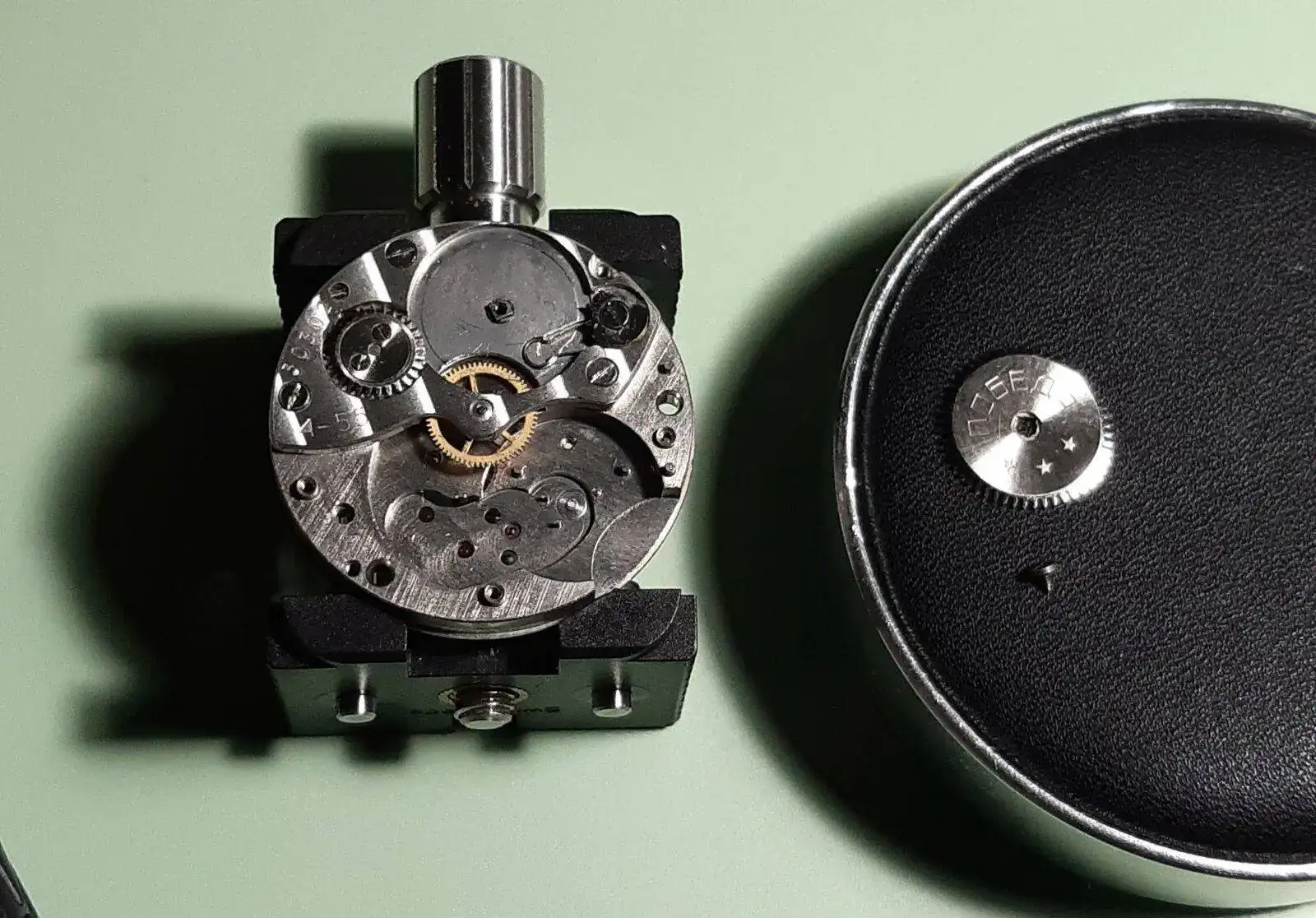 Damos la vuelta al movimiento, lo ponemos en un portamáquinas y aflojamos este tornillo para retirar el áncora: