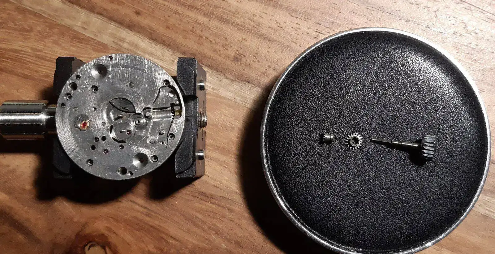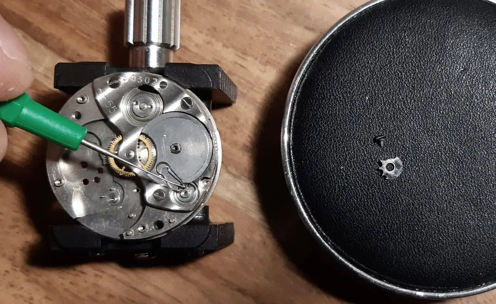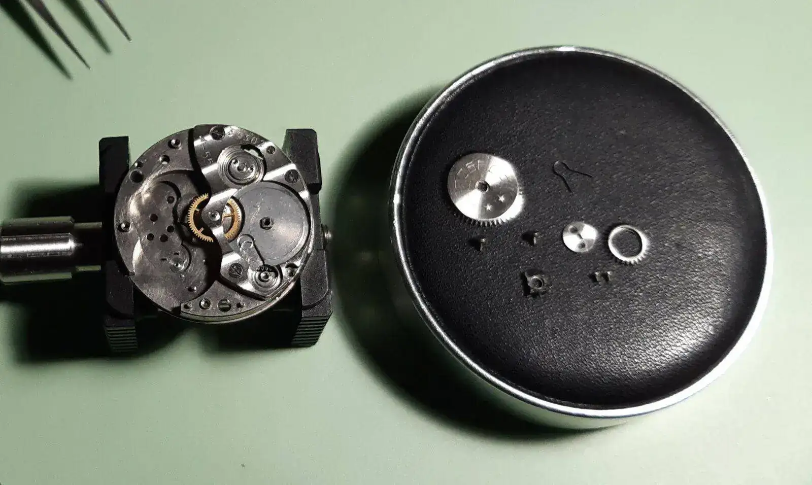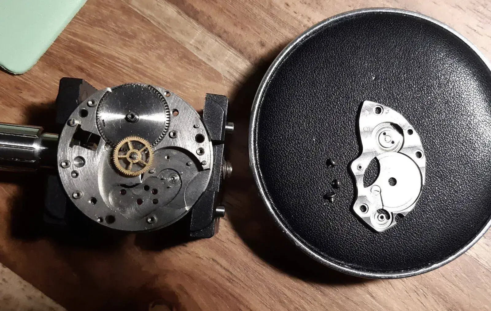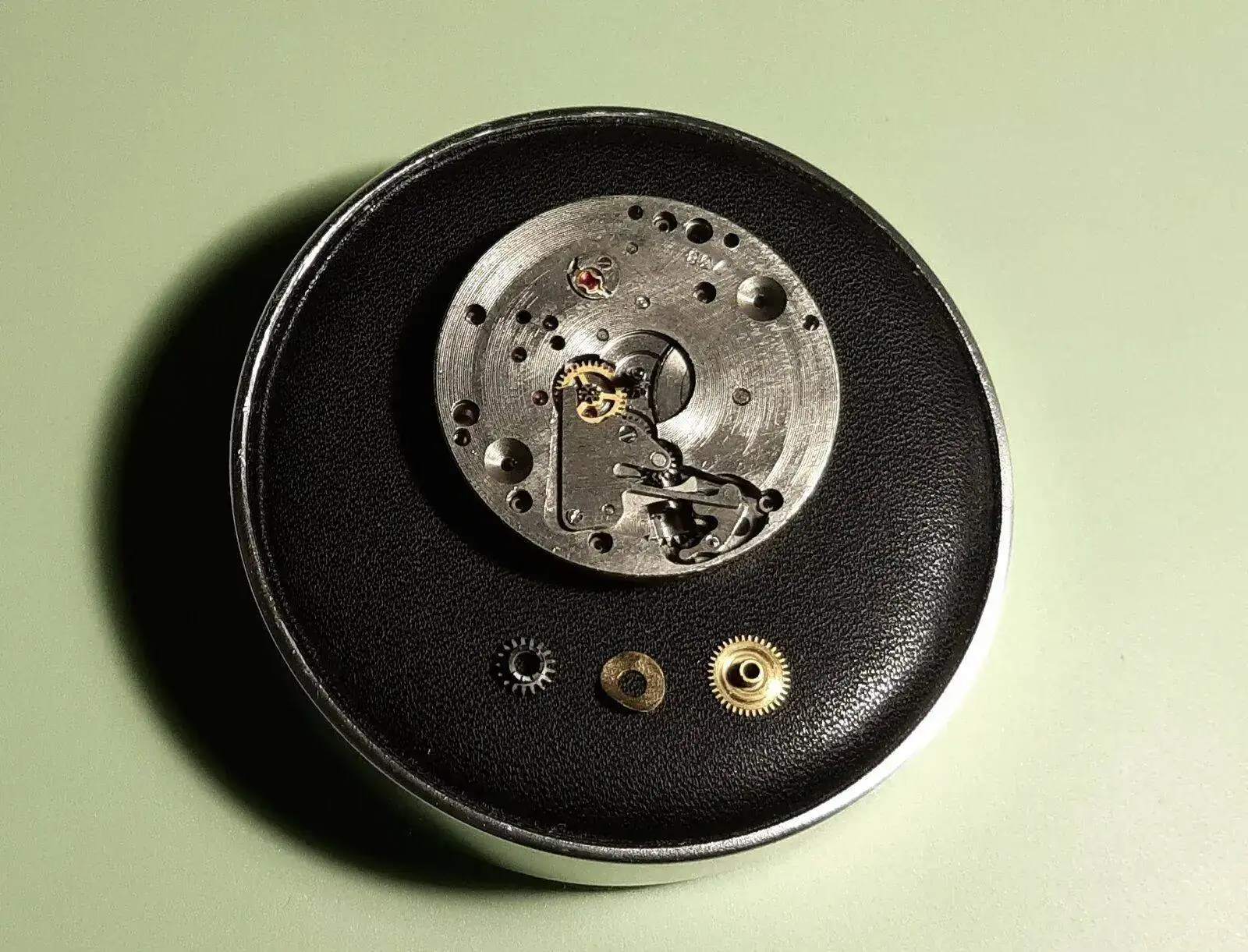 Primero retiramos las tres ruedas, luego el muelle, luego la leva y el remo, la rueda que envuelve la tija y por último el cañón de los minutos: