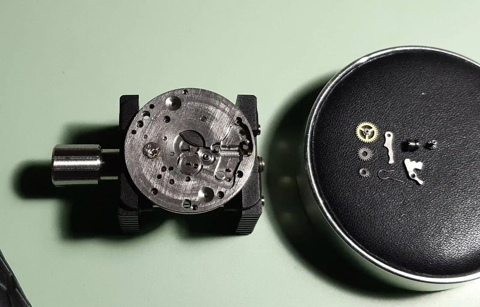 Retiramos los dos tornillos que hay en el canto del movimiento: