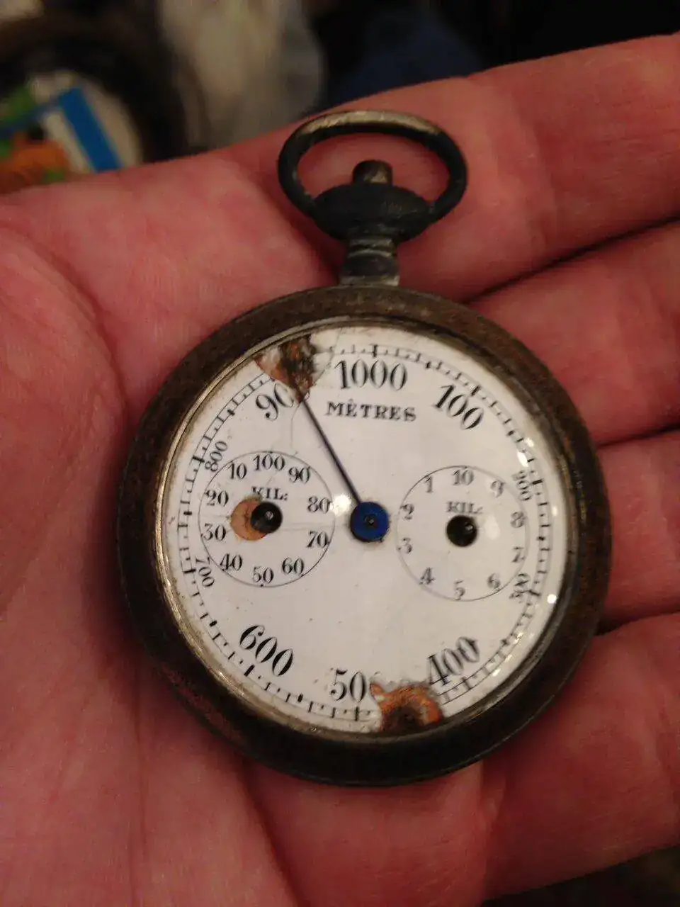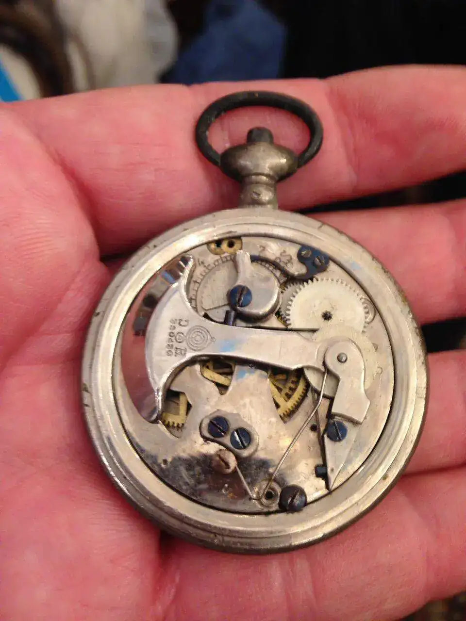 Por más que he buscado información durante años sobre este reloj misterioso del 1880, no la encuentre, por lo que lo expuesto son suposiciones, de que los mecanismos son dos relojes de bolsillo automáticos, o cuenta pasos de bolsillo.