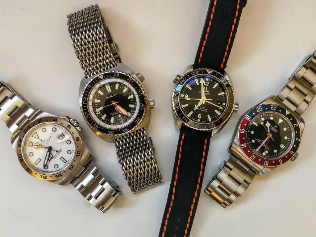 Quería compartir con vosotros una foto del cuarteto de los relojes con la complicación GMT que hay actualmente en mi exigua colección.