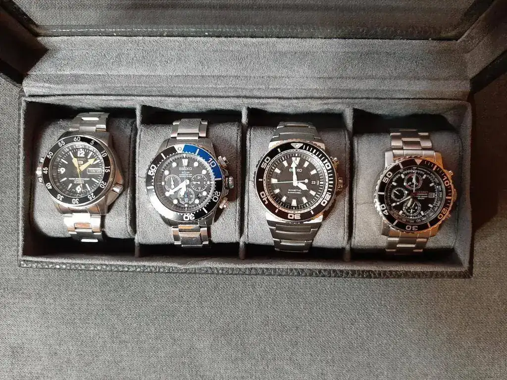Hola. En algunos hilos en los que he participado me declaraba " SEIKISTA" y, si bien es cierto que me gustan mucho también otras marcas de relojes, he de decir que SEIKO tiene "un no se qué, que que sé yo" que hace que me gusten todos sus relojes (o casi...). El caso es que a primera hora de esta tarde ha llegado el que completa el "poker de SEIKO" que nombraba en el título del hilo, lo cual no quiere decir que esto se quede aquí, a lo mejor luego viene el repoker, el contrapoker o el superpoker, quien sabe... De momento y aprovechando que están juntitos un momento(siempre hay uno de ellos en mi muñeca) aquí os dejo una foto de los muchachos colocados de izquierda a derecha por orden de llegada, el "Atlas" hace unos cinco o seis años y el "Daytona" hoy mismo.