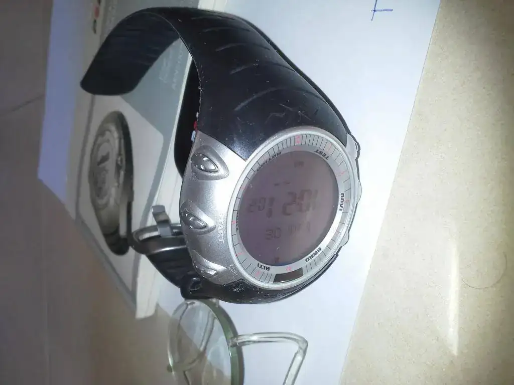 Buenas tardes compañeros, pongo a la venta un pulsometro, reloj, altímetro y no recuerdo mas características Polar AXN500. El reloj tiene ya sus años, pero ha sido usado muy poco. En principio, funciona todo bien...pero no puedo asegurarlo totalmente porque lleva guardado años en el cajon por eso el precio que le pongo. Esteticamente esta casi perfecto, solo tiene una picadita en el centro del cristal. Se incluye todo lo se ve en las fotos. Precio 30e. Interesados enviar Mp