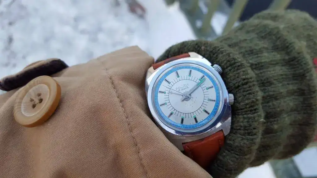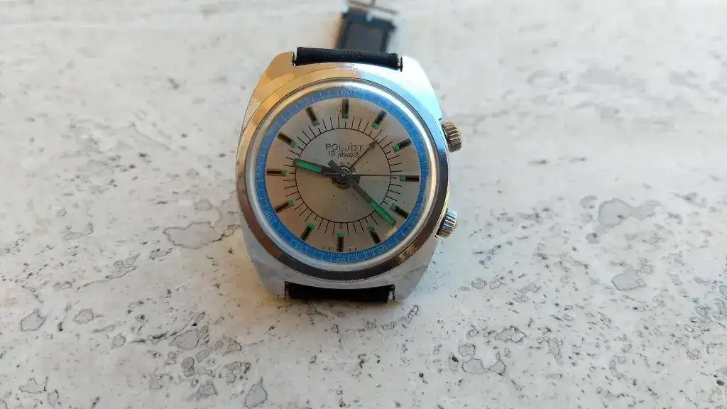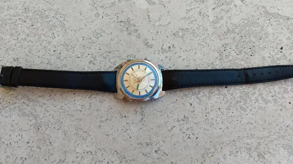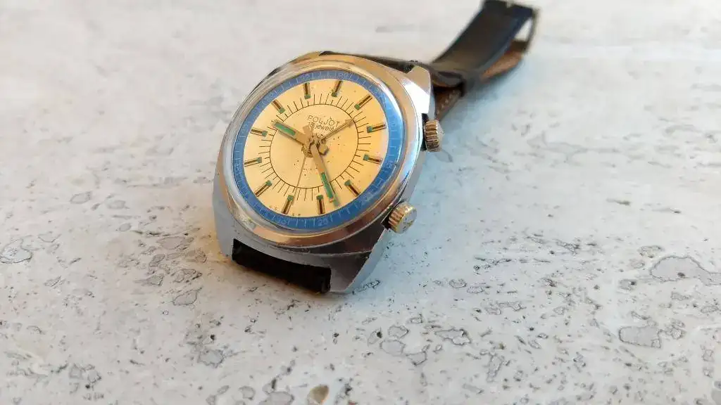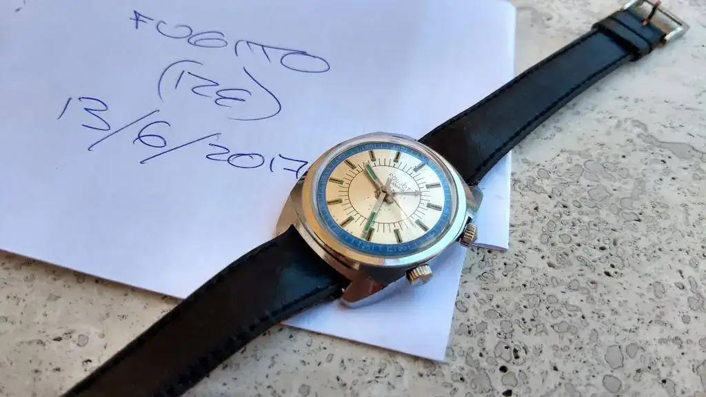 Saco por falta de uso este simpático grillo soviético, un Poljot con calibre 2612.1 (la copia soviética del AS1475) en perfecto estado de funcionamiento (lumen inactivo, lógicamente a su edad) y en general bien conservado, más allá de las lógicas señales de su edad de unos 35 años. Es un reloj que me cae muy bien pero apenas uso, y tampoco casa mucho con el resto de mi colejuntación, así que mejor que lo disfrute otro.