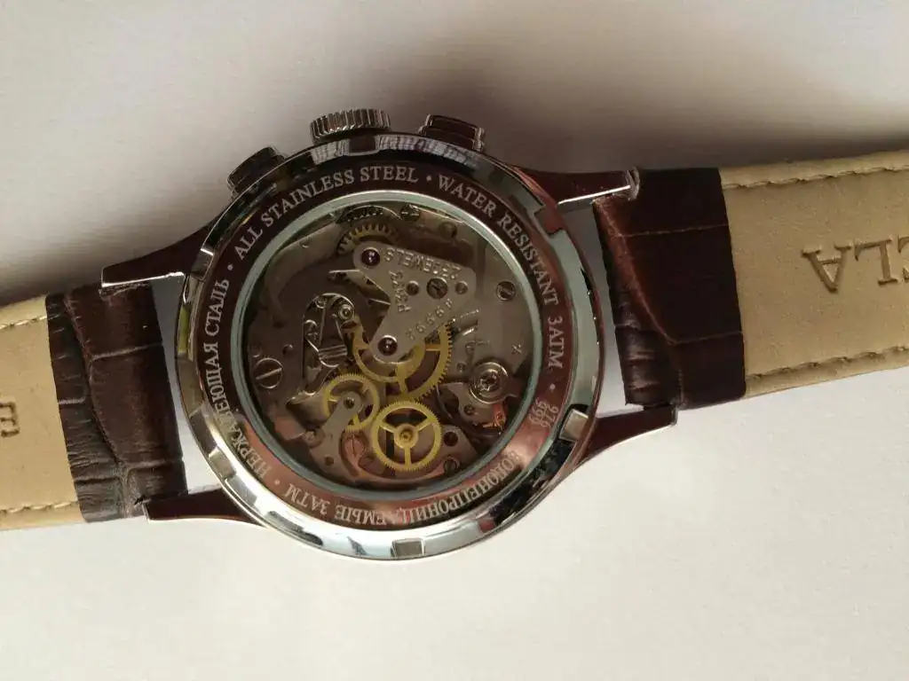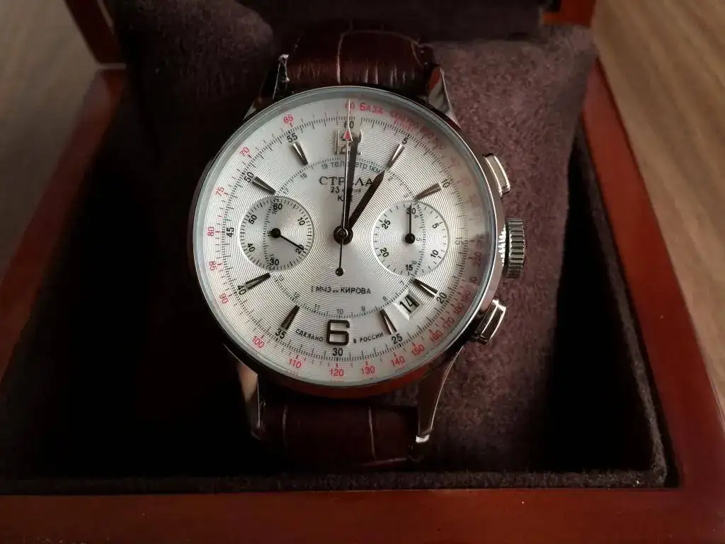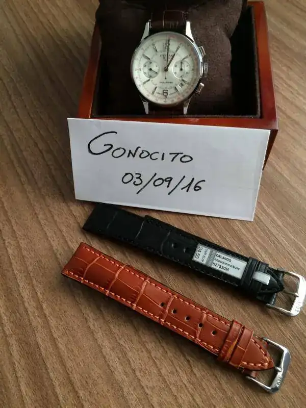 Vendo el Strela por falta de uso, lo compré en Munich a Julian Kampmann pero al final lo habré usado en 2ó3 ocasiones porque siempre otro ocupa su lugar, no le veo ninguna marca, es un verdor reestreno. La correa original es de 22 y la tuve que cortar para adaptarla a su medida (20), las otras 2 que regalo una está nueva y la otra es la que traía puesta. No encuentro ni la documentación (lo guardé en su caja y no se dónde la he puesto) ni la gamuza que venía pues la utilicé para limpiar otros relojes y a saber dónde está.