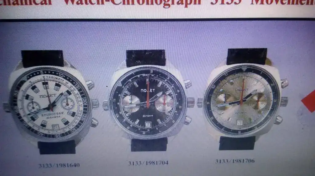 Aquí ya podemos ver tres referencias diferentes y una descripción del calibre 3133. Si queréis ver los catálogos completos los podéis encontrar aquí: http://ussr-watch.com/watch-catalogues/