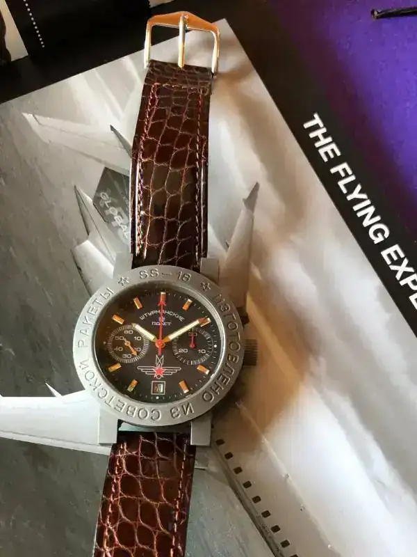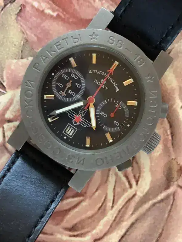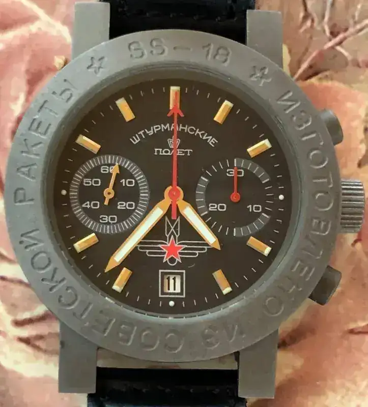 Saco a la venta por falta de uso este cronógrafo ruso de edición limitada a 500 piezas modelo “ Sturmanskie SS-18 Titan “, extremadamente raro fabricado en 1993 con la parte posterior atornillada y un peso de solo 55 gramos. (sin correa). Su caja de titanio tiene un diámetro de 42 mm, 13 mm de alto y 20 mm de ancho para las correas.