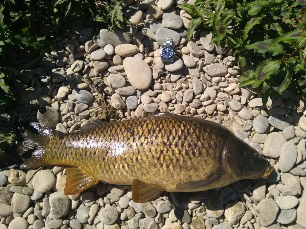 No, no es en barca, es pesca de la carpa...lo que ves, es la sombrilla y este pez, es lo que pesco...