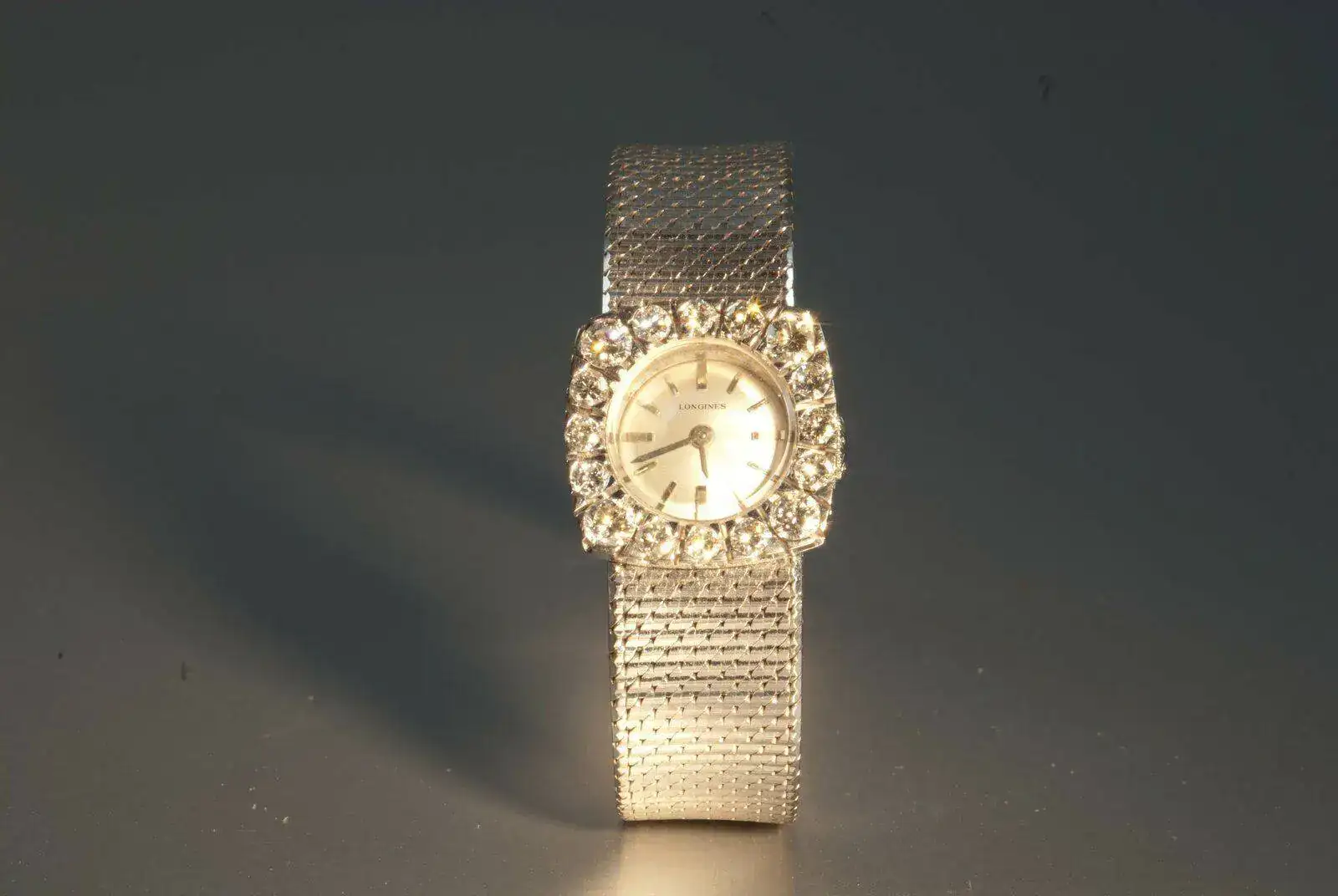 España estaba dividida en zonas comerciales, cada una atendida por un comercial, que entonces se llamaba viajante, por eso, porque viajaban. Pero el lugar de residencia era Madrid. Mi padre hacía dos rutas: Asturias (que incluía Valladolid y León) y Galicia (que incluía Zamora y Salamanca). En cada ruta tardaba un mes, más o menos, y viajaba con muestrario, es decir, una serie de maletas que él tenía clasificadas por marca y material (oro o acero). Cada maleta estaba llena de mantas enrolladas con los relojes dentro y puedo asegurar que la maleta "Oro" (Cyma y Longines) pesaba muchos kilos, kilos de oro, naturalmente. He de decir que jamás tuvo ningún problema de robo, ni siquiera intento. Evidentemente eran otros tiempos. Al visitar al cliente, en función de lo que este necesitara, enseñaba el muestrario y el cliente elegía lo que quería y se quedaba con el género. Posteriormente se le facturaba. Por eso, si tu abuelo compró el Longines en Oviedo ese reloj pasó por las manos de mi padre. Completada una ruta volvía a Madrid, hacía todo el trabajo burocrático de inventario, reposición y facturación y a los 7 ó 10 días comenzaba la otra ruta. De manera que yo fuí, prácticamente, huérfano de padre y mi madre pues casi madre soltera. Uno de los productos que llevaba en el muestrario (tenía un nombre, pero por más que lo he intentado no he conseguido acordarme) eran Longines de señora de oro amarillo u oro blanco, redondos o cuadrados, pero solamente las cajas (con el movimiento dentro, claro) y su finalidad era crear relojes joya. No tenían ni asas para correa. La idea era que los joyeros lo utilizaran para usar su creatividad en la pulsera y adornos que considerara oportuno. Por supuesto que para hacer eso no era necesaria ninguna licencia de Longines. Eso nunca lo hizo Girod, ya que Girod jamás tuvo taller de joyería (tenía un muy buen taller de relojería para sus propias marcas). Esto te lo comento por el reloj de abuela. Yo pienso que la joyería de Oviedo compró una de las piezas que te he descrito y el joyero lo completó a su gusto (pulsera, adorno de oro blanco o platino y brillantes, supongo que oro blanco porque el platino es muy difícil de trabajar). Longines también vendía( regalaba) el icono de Longines en oro blanco o amarillo para poner en el cierre de la pulsera que realizase el joyero. Algo similar a este que fué regalo de mi padre a madre allá por 1964