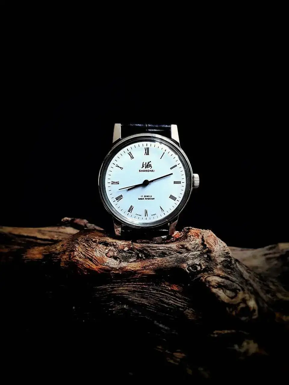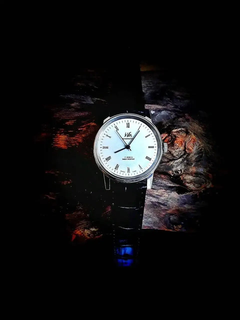 Disculpándome con todos y cada uno de ustedes por mi extensa verborrea, les presento este reloj de corte clásico, llamado Shangai 8120, proveniente de la Shangai watch Factory, con 34,2 milímetros de diámetro, correa en piel (lo de piel lo dudo mucho) de 18 milímetros, calibre de remonte manual auténtico de los años 80, (lo cual nos indica que es un verdadero vintage)